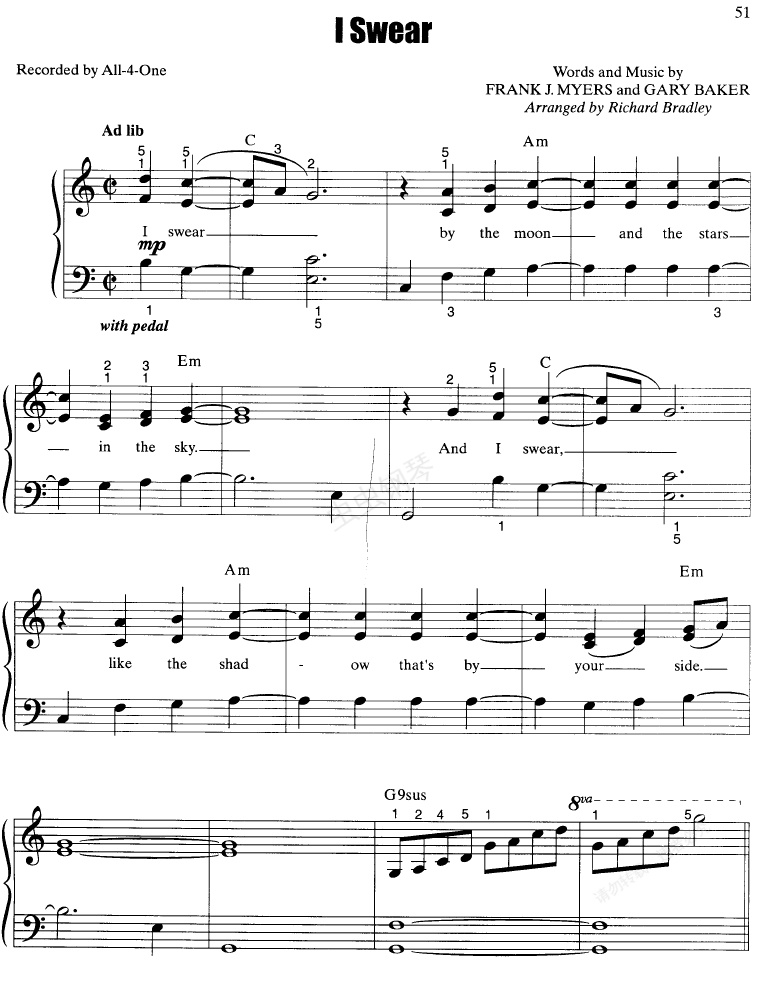 钢琴谱:I Swear