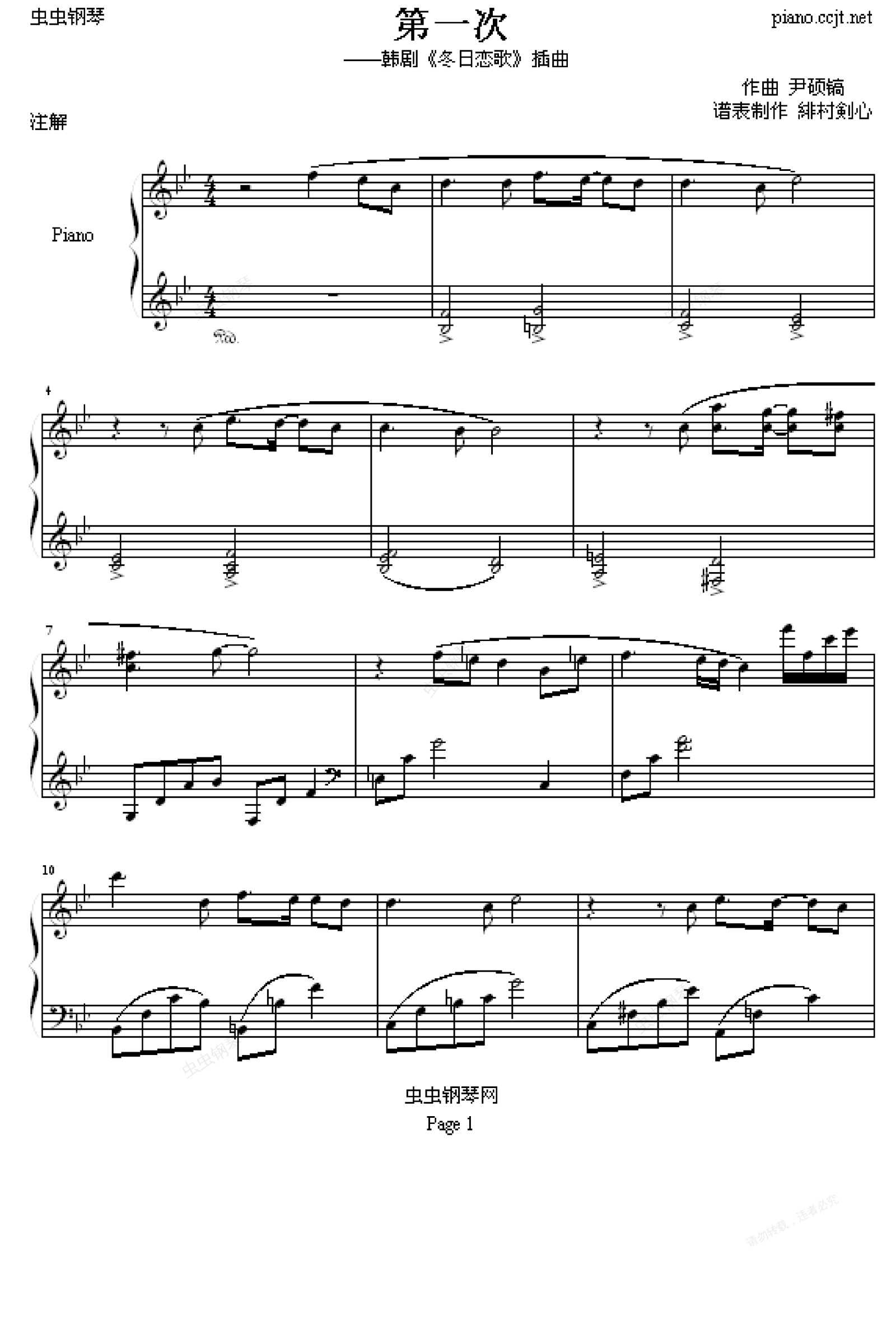 钢琴谱:第一次 - 緋村剑心《冬季恋歌》