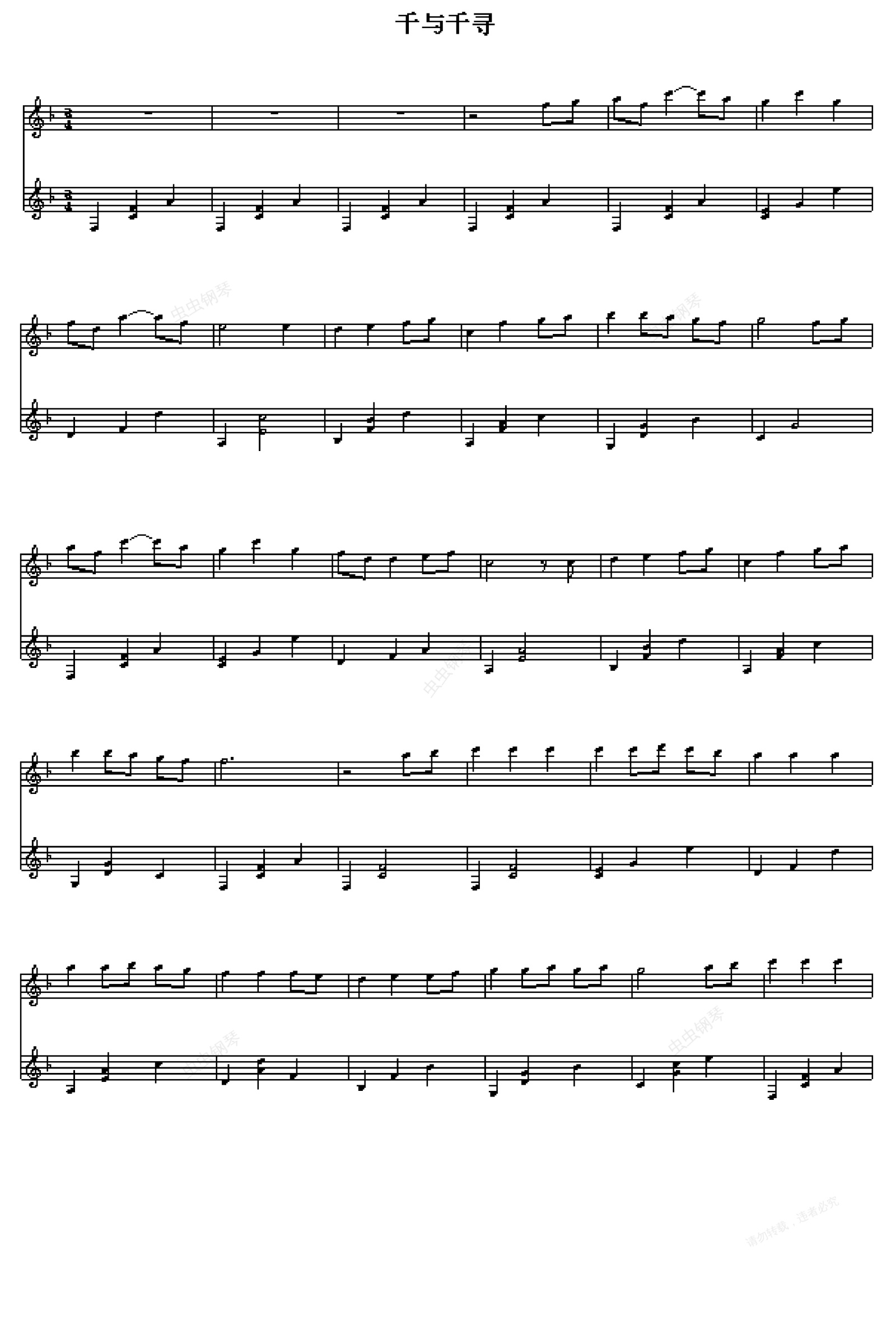 钢琴谱:千与千寻片尾歌--竖琴版