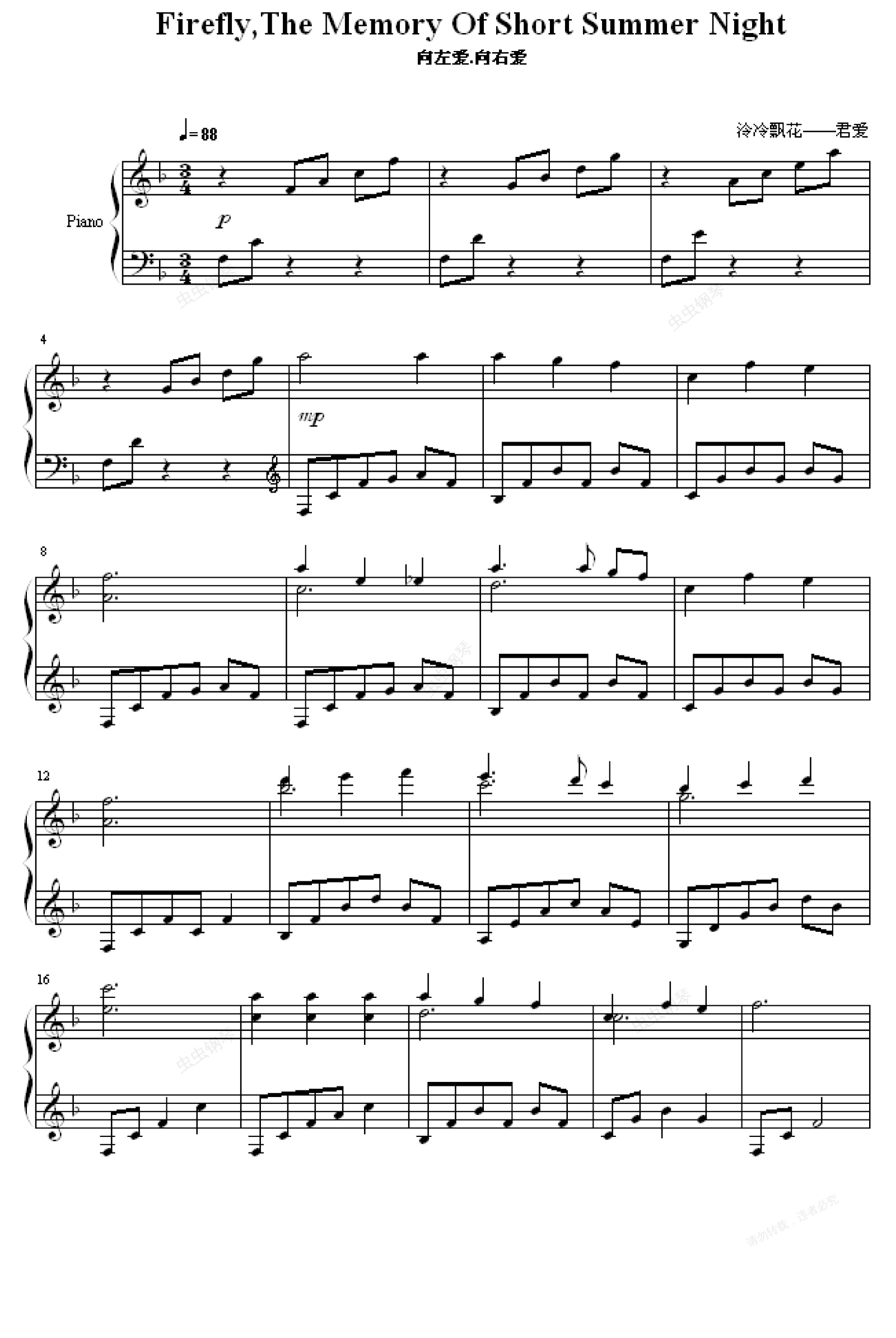 钢琴谱:Firefly The Memory Of Short Summer Night