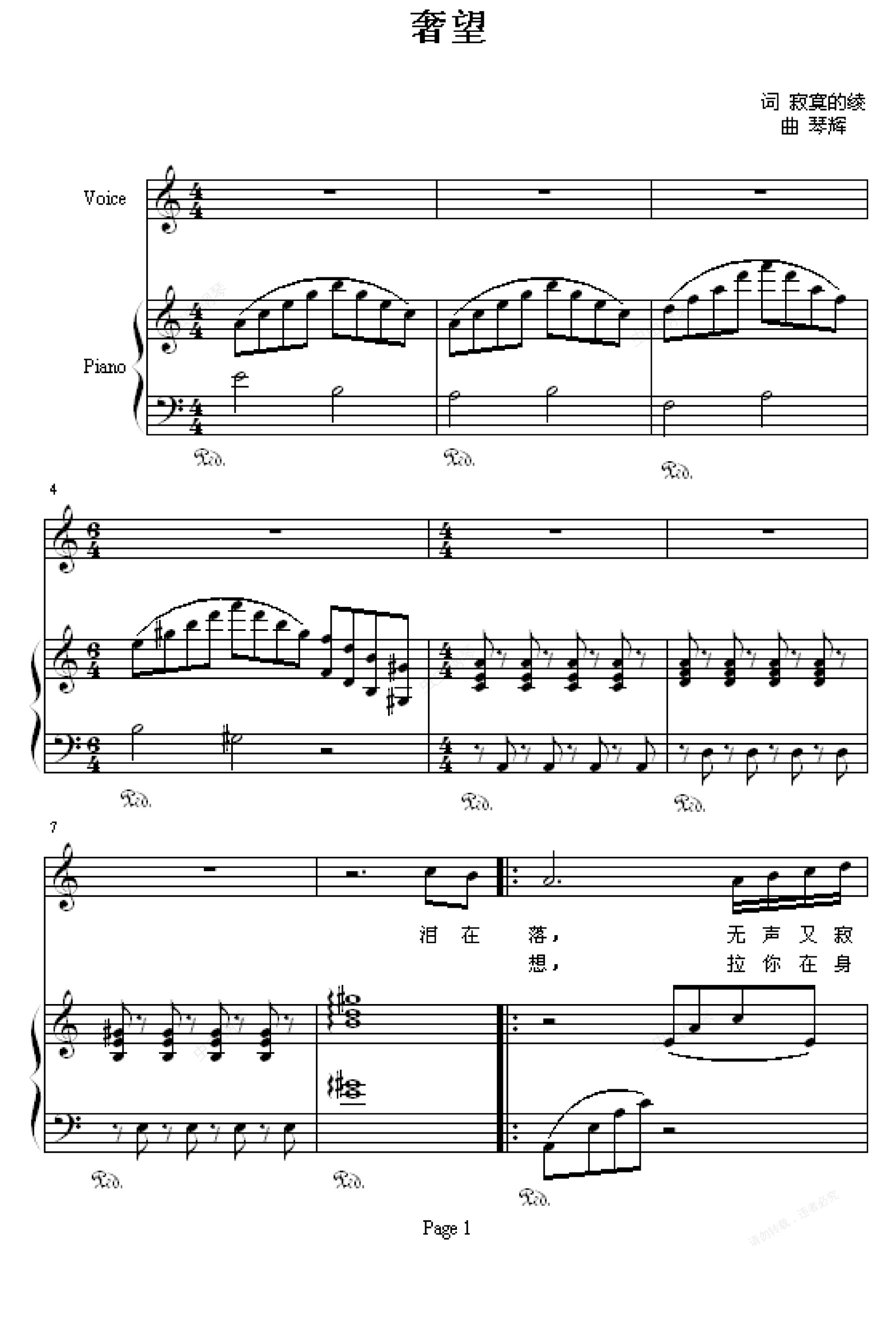 钢琴谱:奢望
