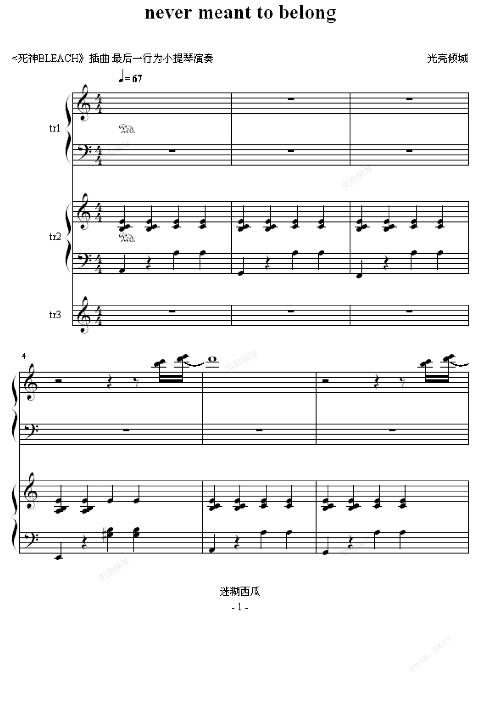 钢琴谱:never meant to belong-:<死神BLEACH>插曲
