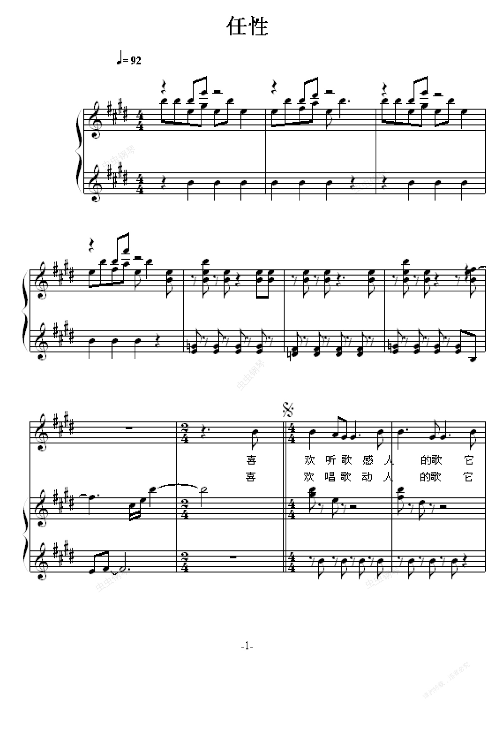 钢琴谱:任性