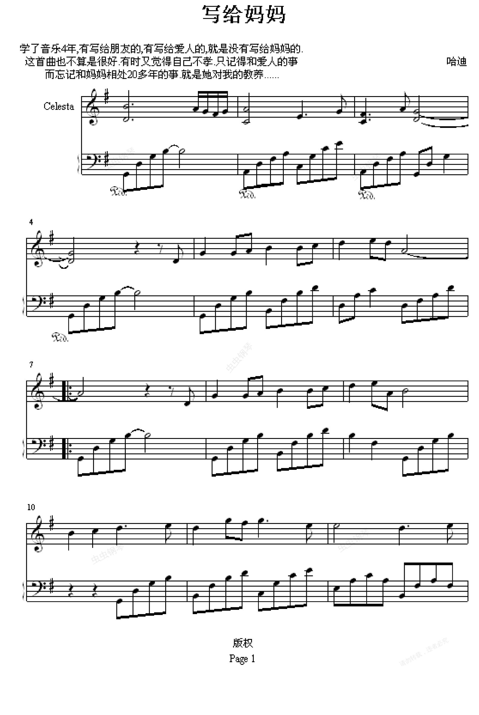 最后那里不知怎么搞呀,应该连起来的. 自己学的,肯定没有你们那么有专业水准.请不要见怪哦, 不过我真的想进步,不再写这些平淡的旋律.希望那些高手给点意见我呀.....我好惨呀.....