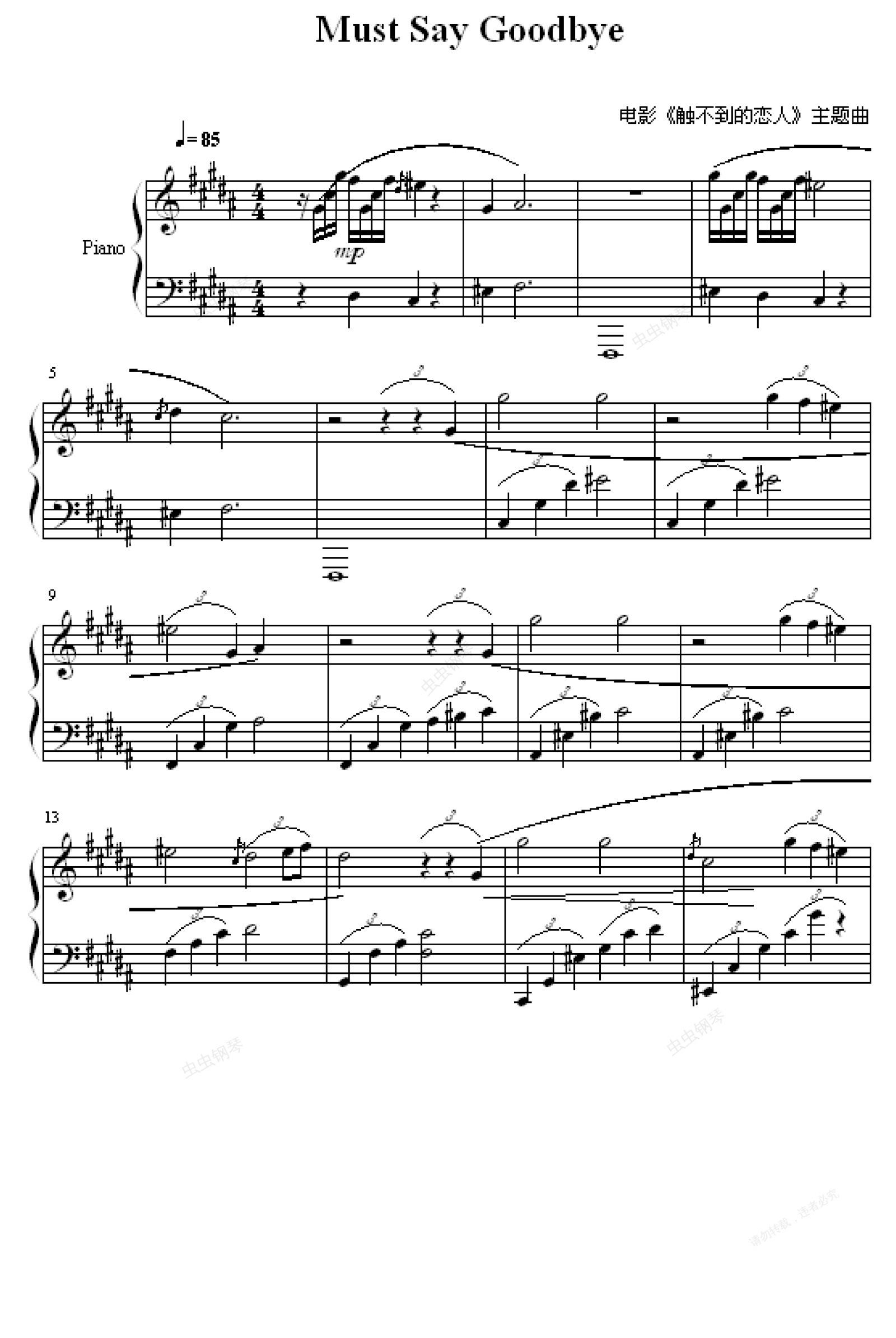 钢琴谱:Must Say Goodbye -韩国电影《触不到的恋人》主题曲