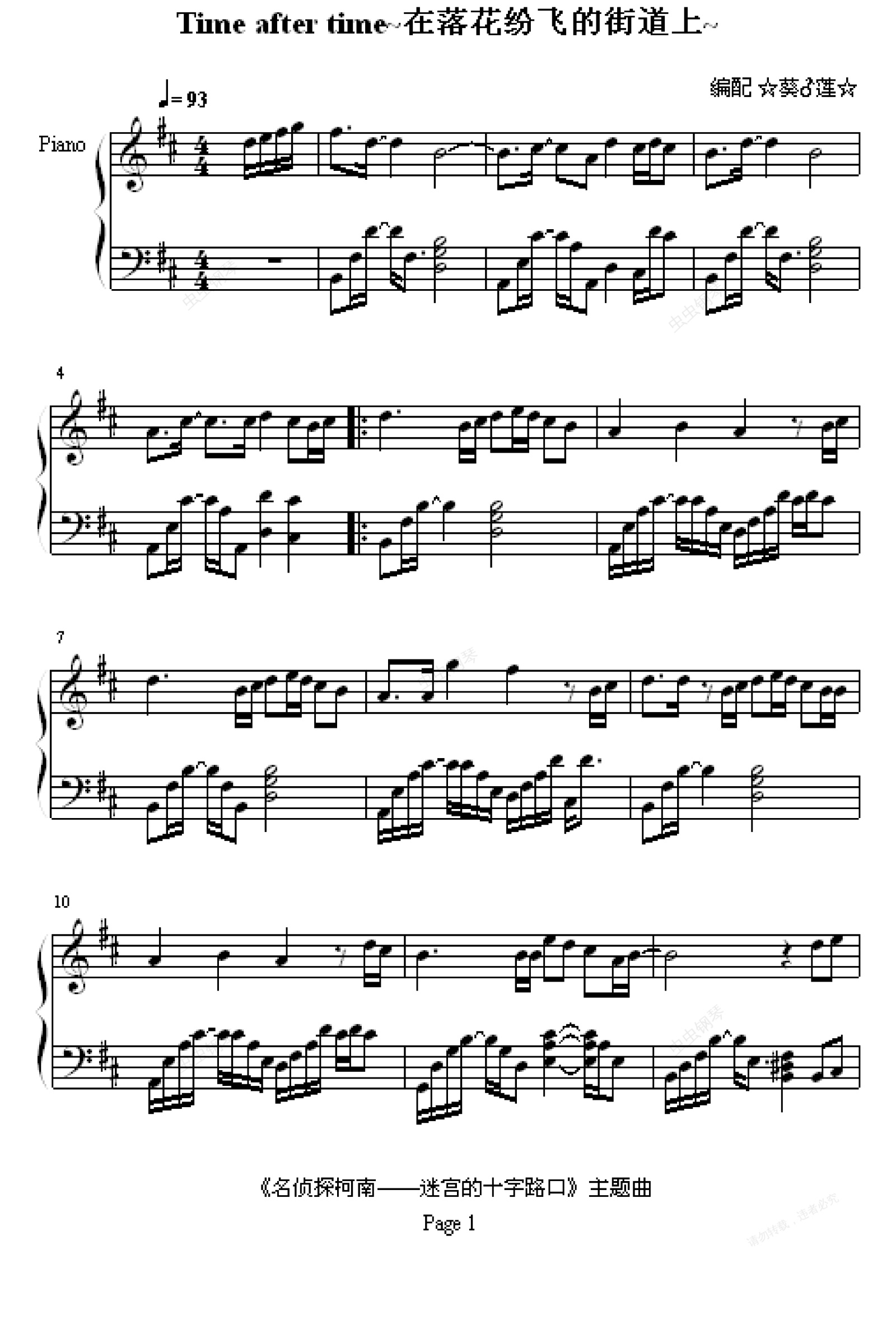 钢琴谱:Time after time~在落花纷飞的街道上~-《名侦探柯南——迷宫的十字路口》主题曲