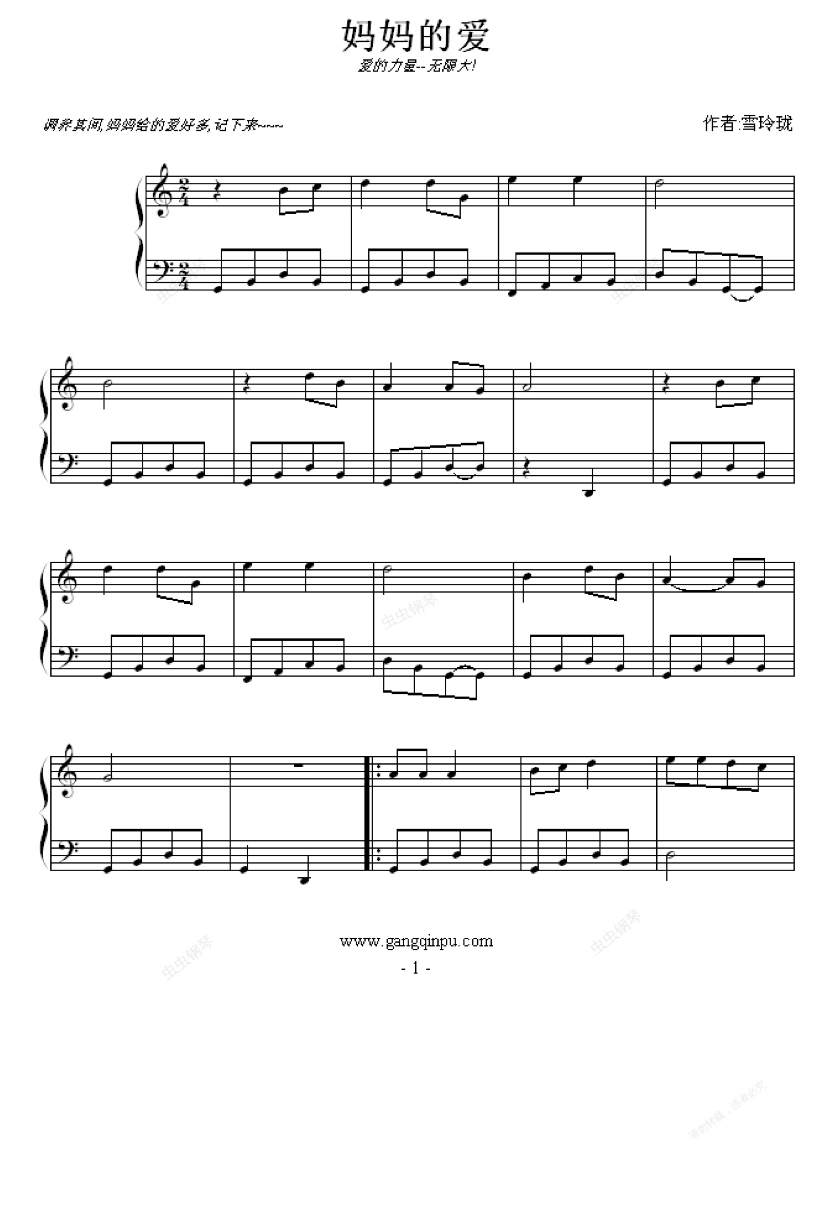 您的位置: 首页 > 钢琴谱库 > 妈妈的爱