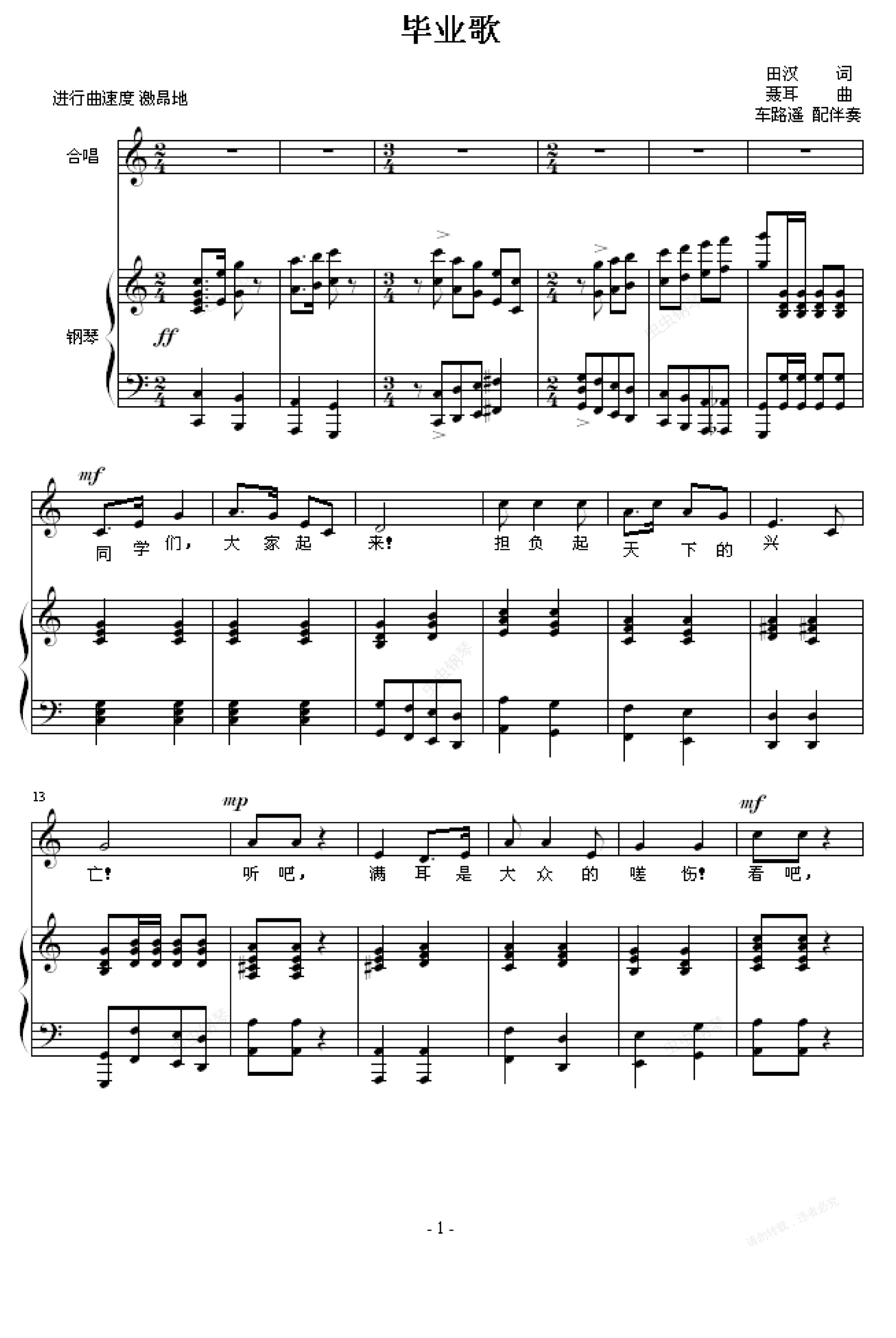 自己编配的《毕业歌》的合唱钢琴伴奏。