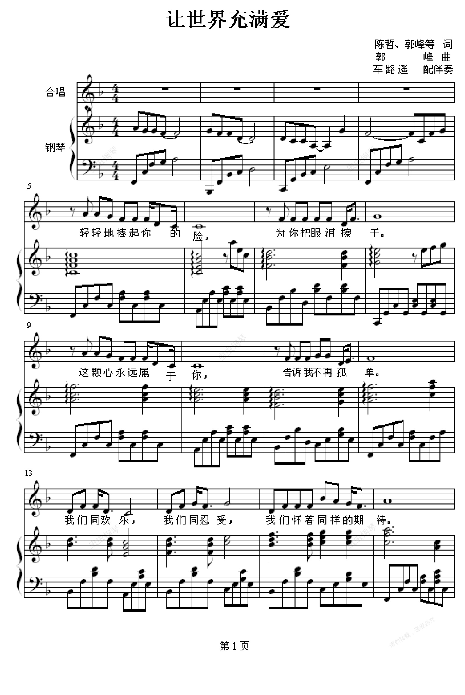 钢琴谱:让世界充满爱-合唱伴奏