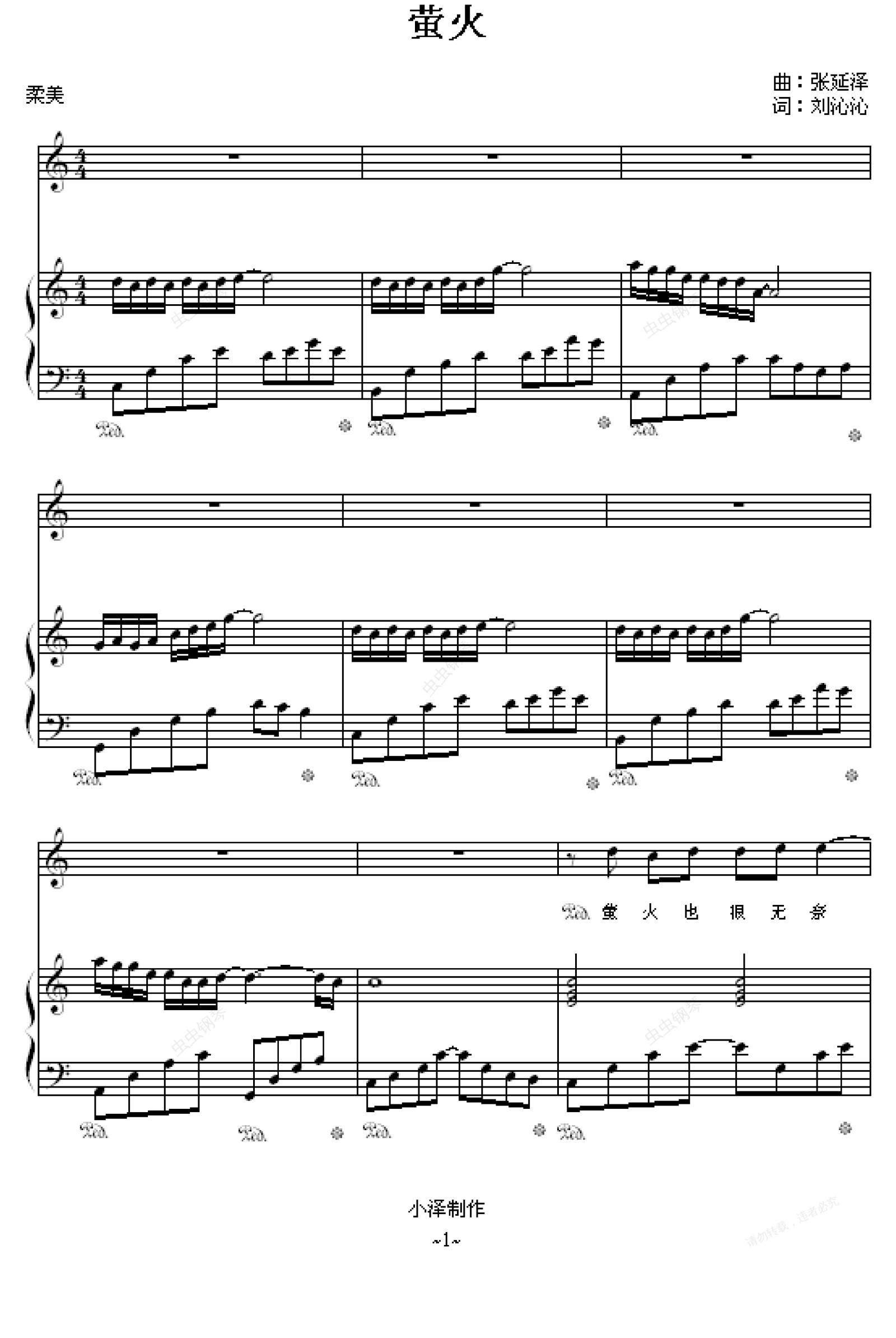 钢琴谱:萤火