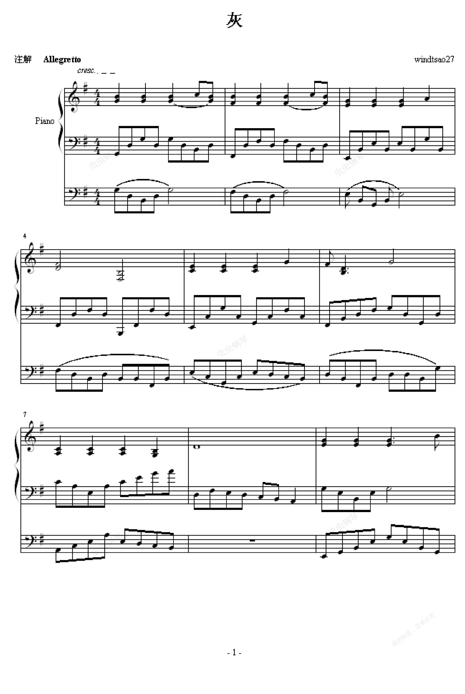 钢琴谱:灰