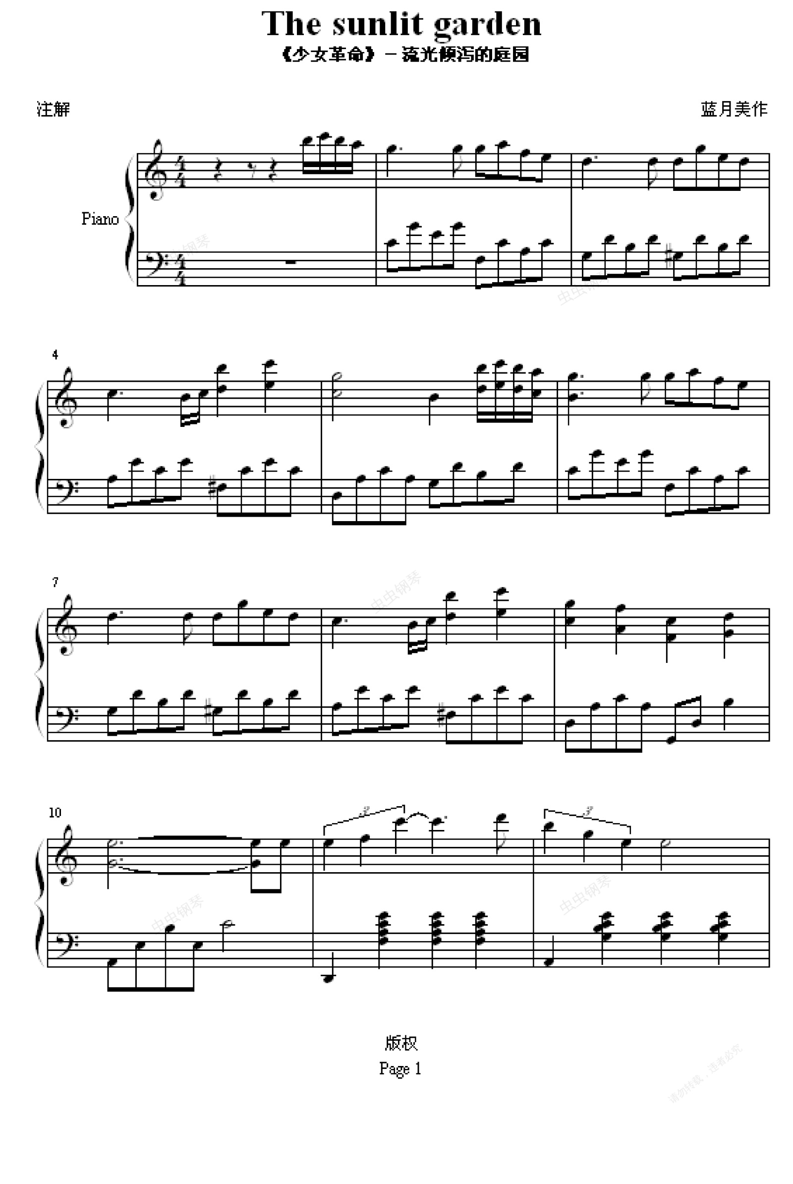 钢琴谱:流光傾瀉下的庭園-(完整版)