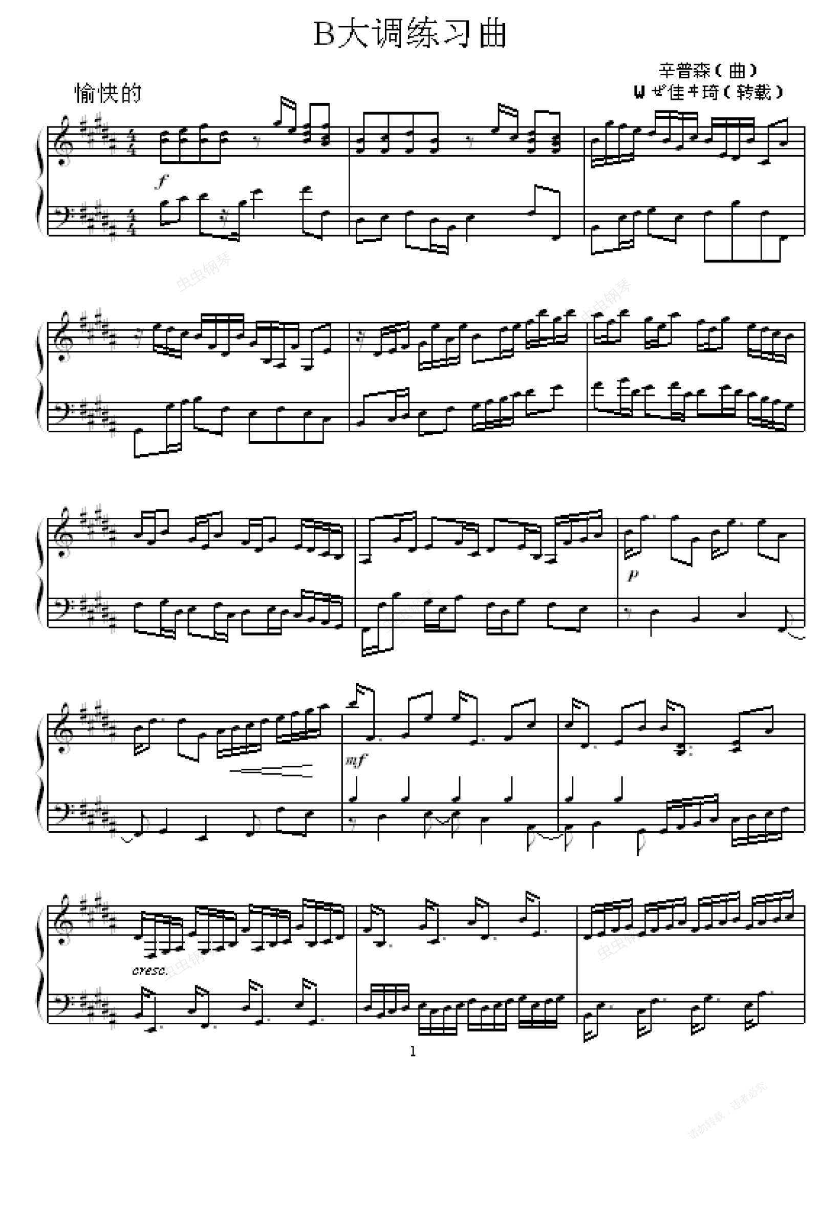 钢琴谱:B大调练习曲