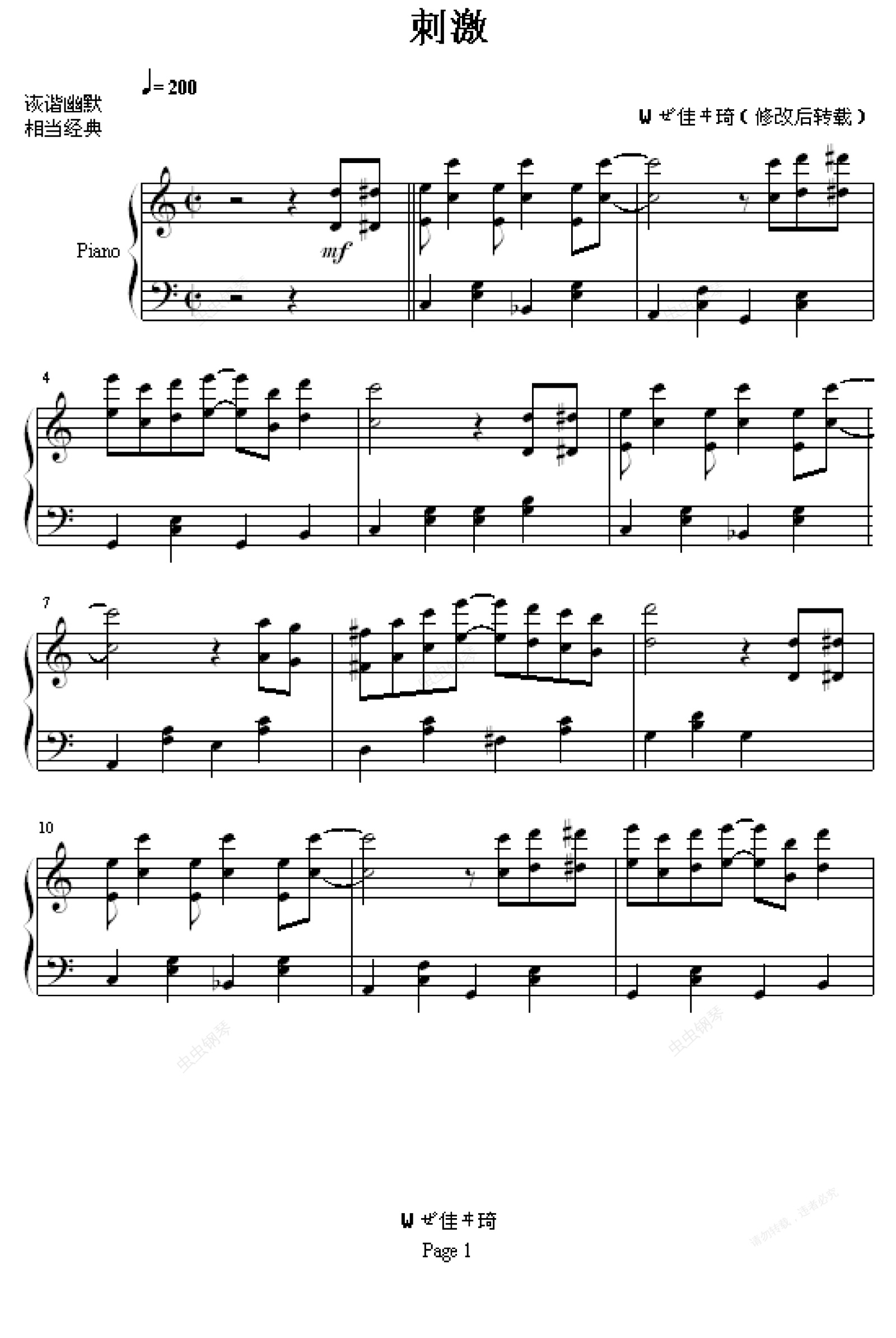 钢琴谱:刺激