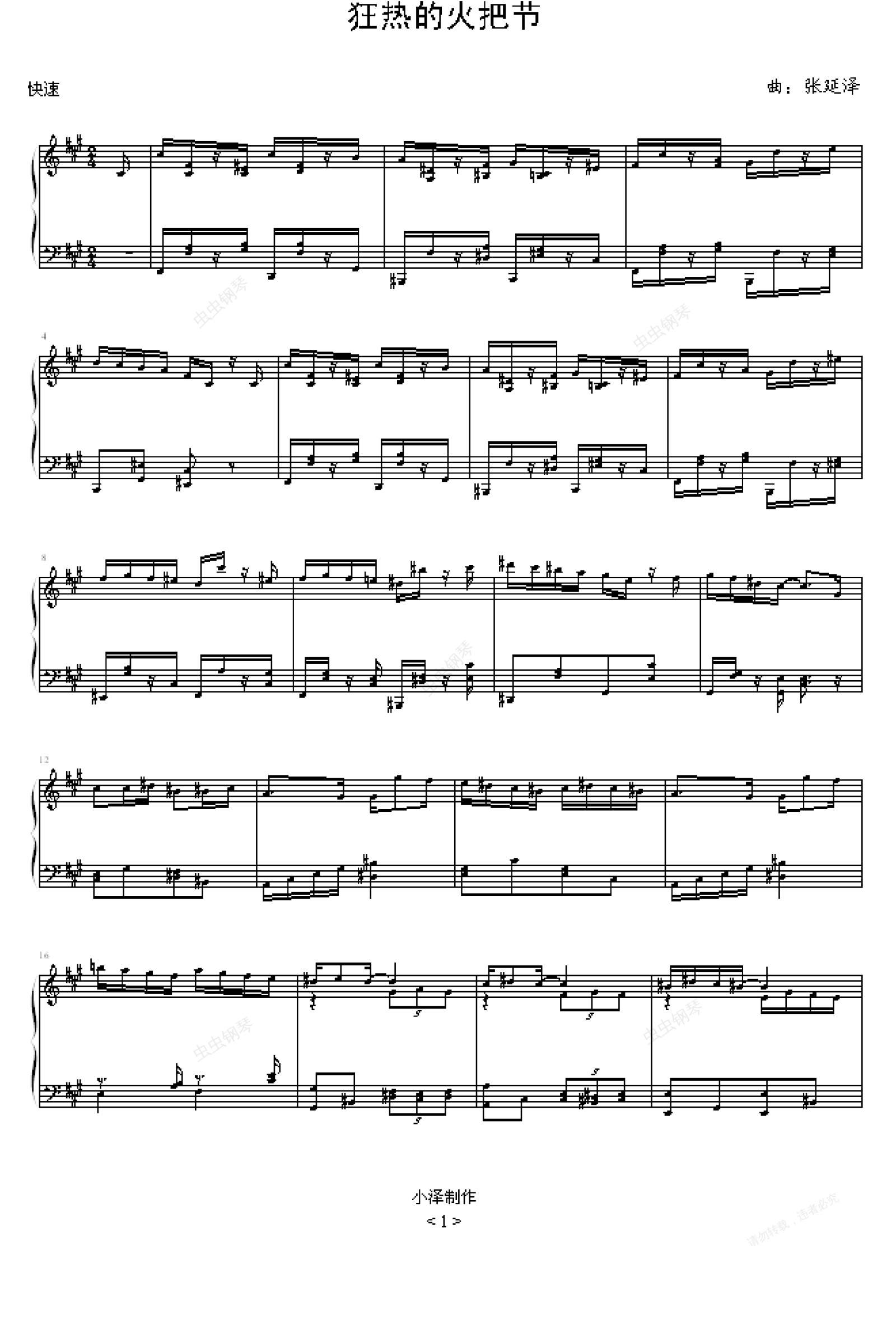 钢琴谱:狂热的火把节
