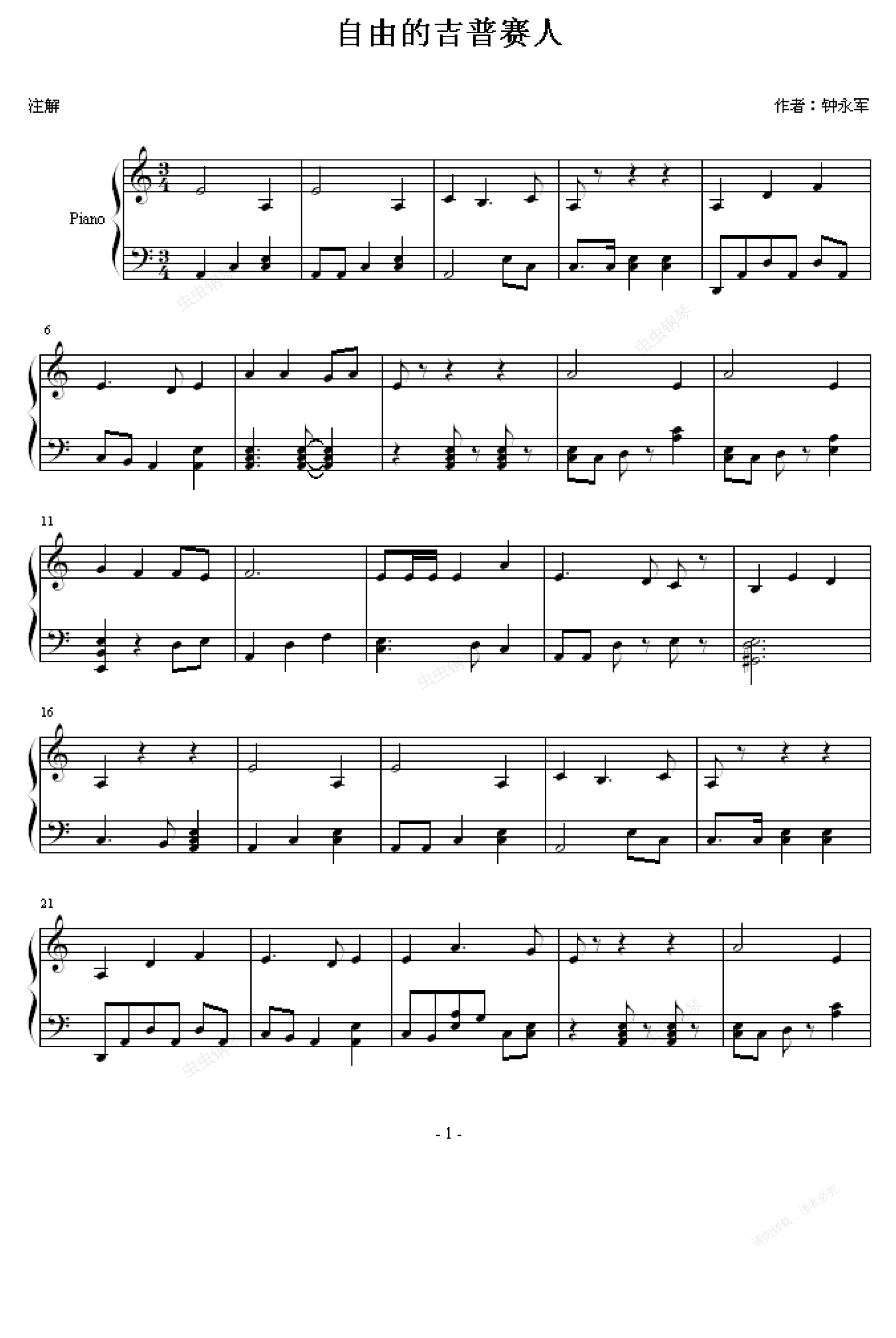 钢琴谱:自由的吉普赛人