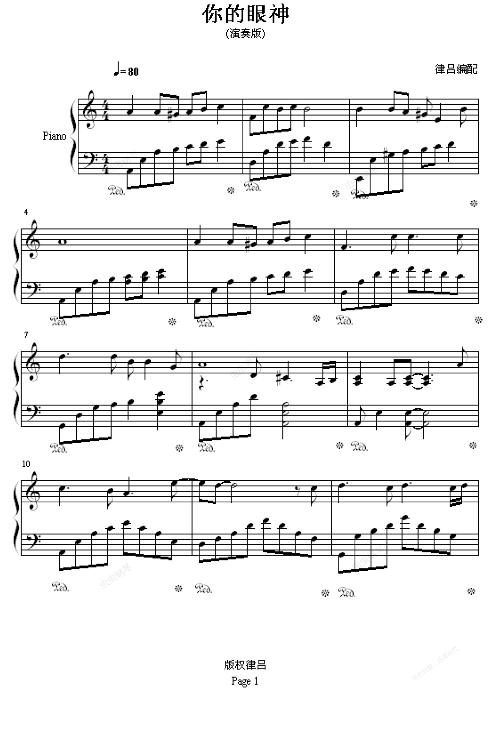 根据蔡琴《你的眼神》编配的演奏版,适合具有钢琴初级水平的朋友弹奏。