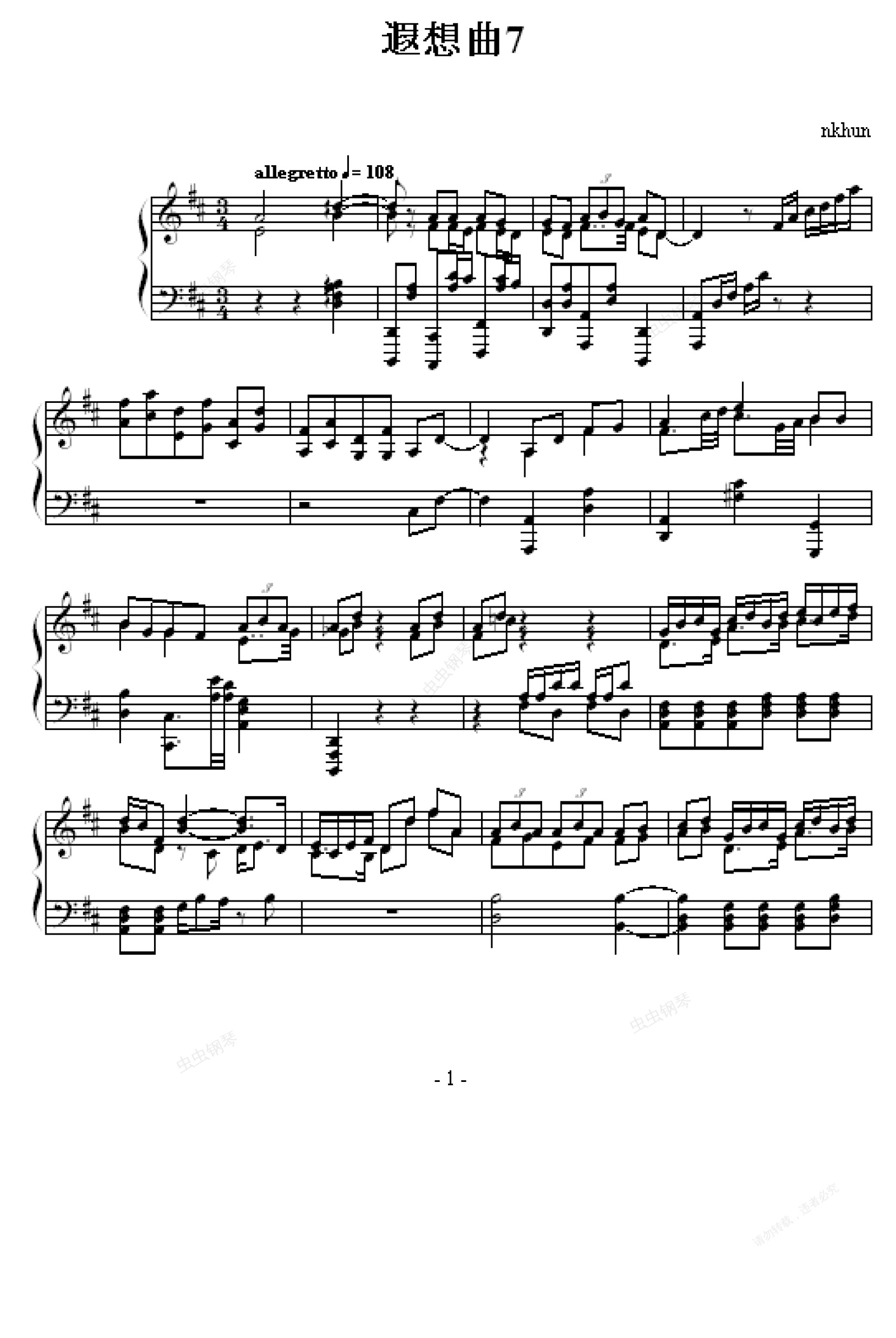 钢琴谱:遐想曲7