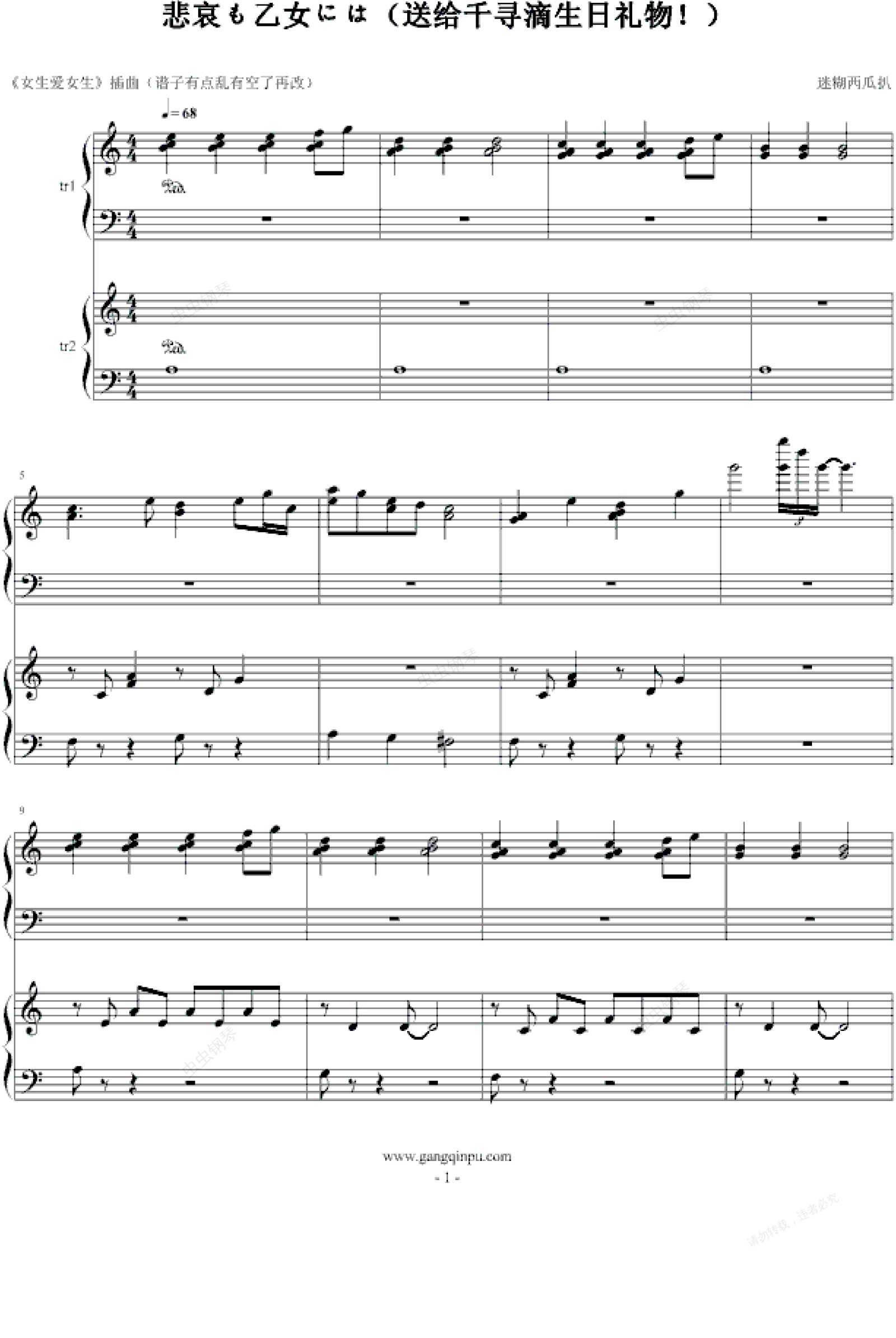钢琴谱:悲哀も乙女には - 送人的生日礼物