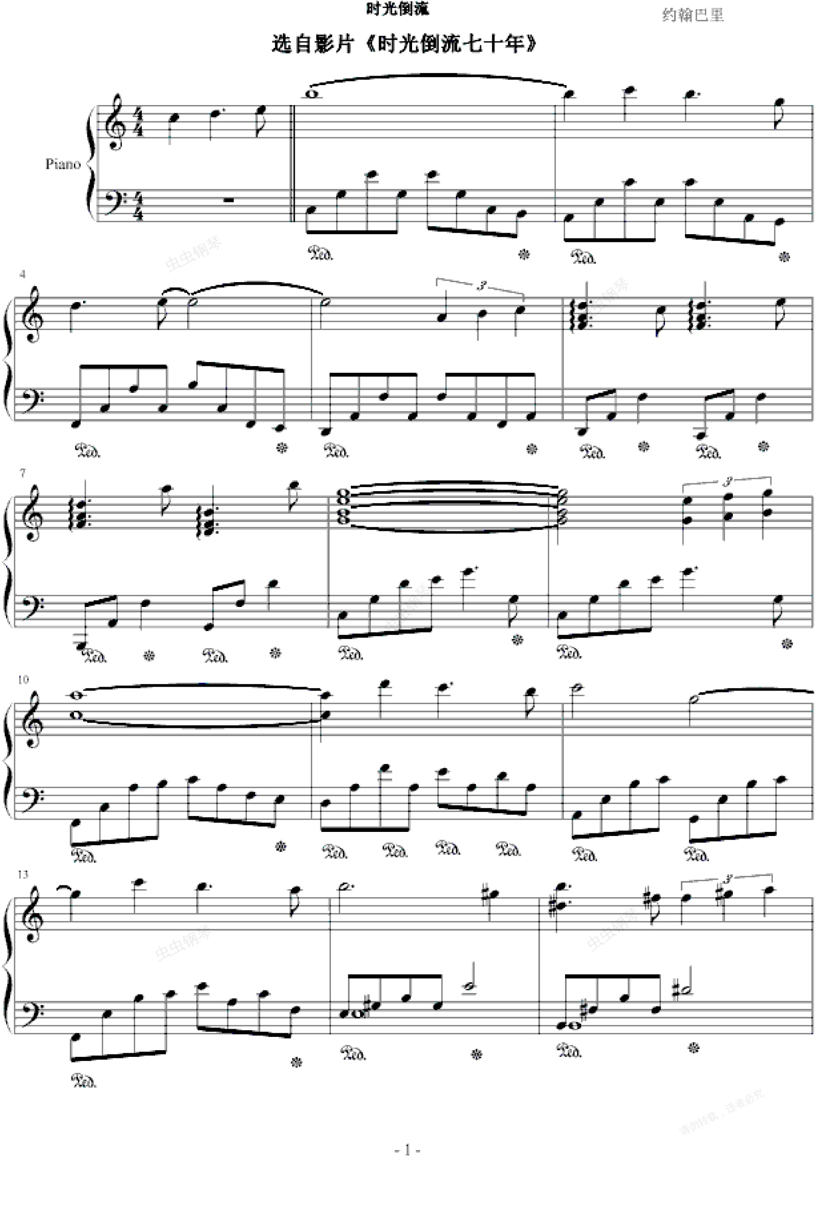 钢琴谱:时光倒流-电影《时光倒流七十年》