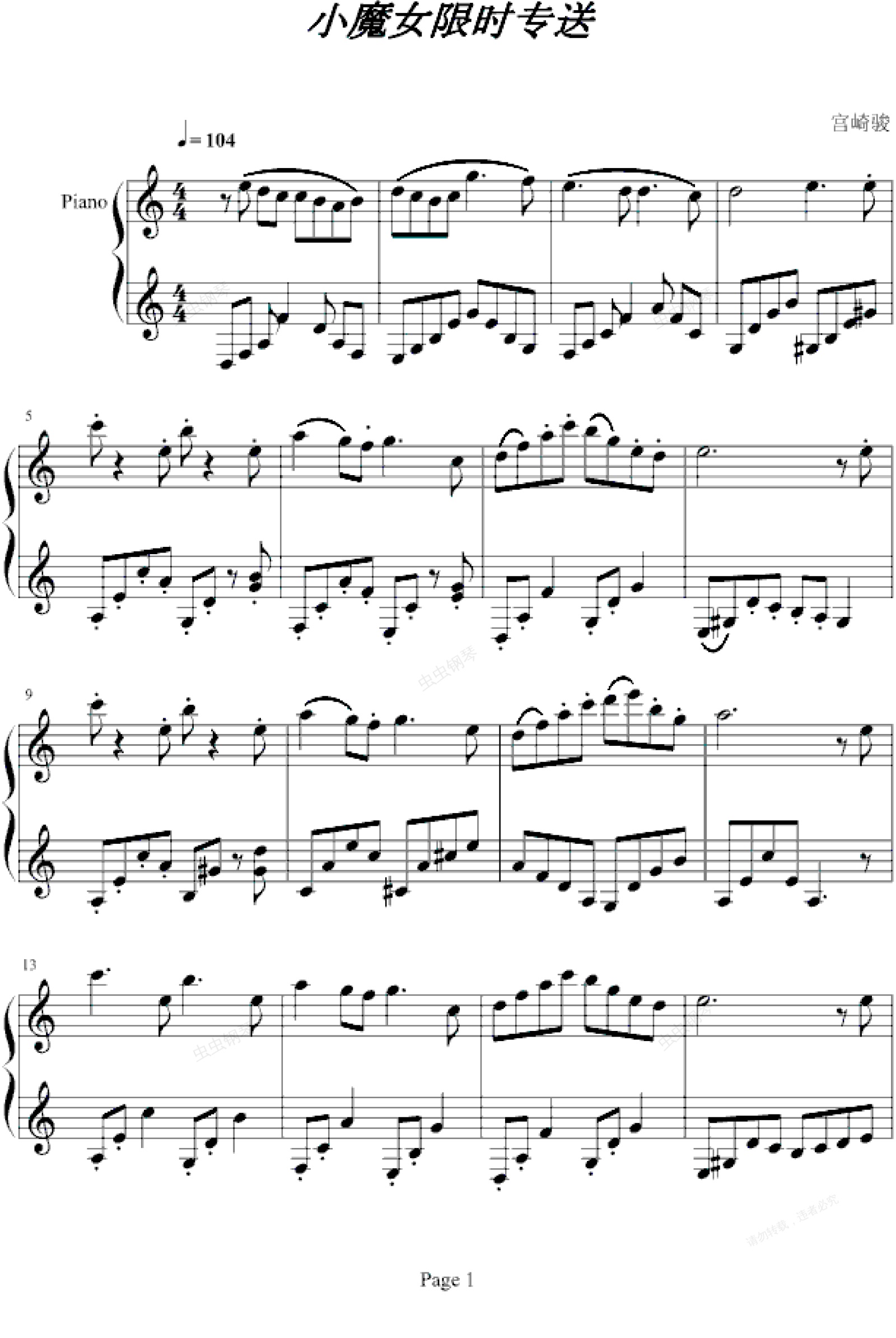 钢琴谱:魔女宅急便-插曲