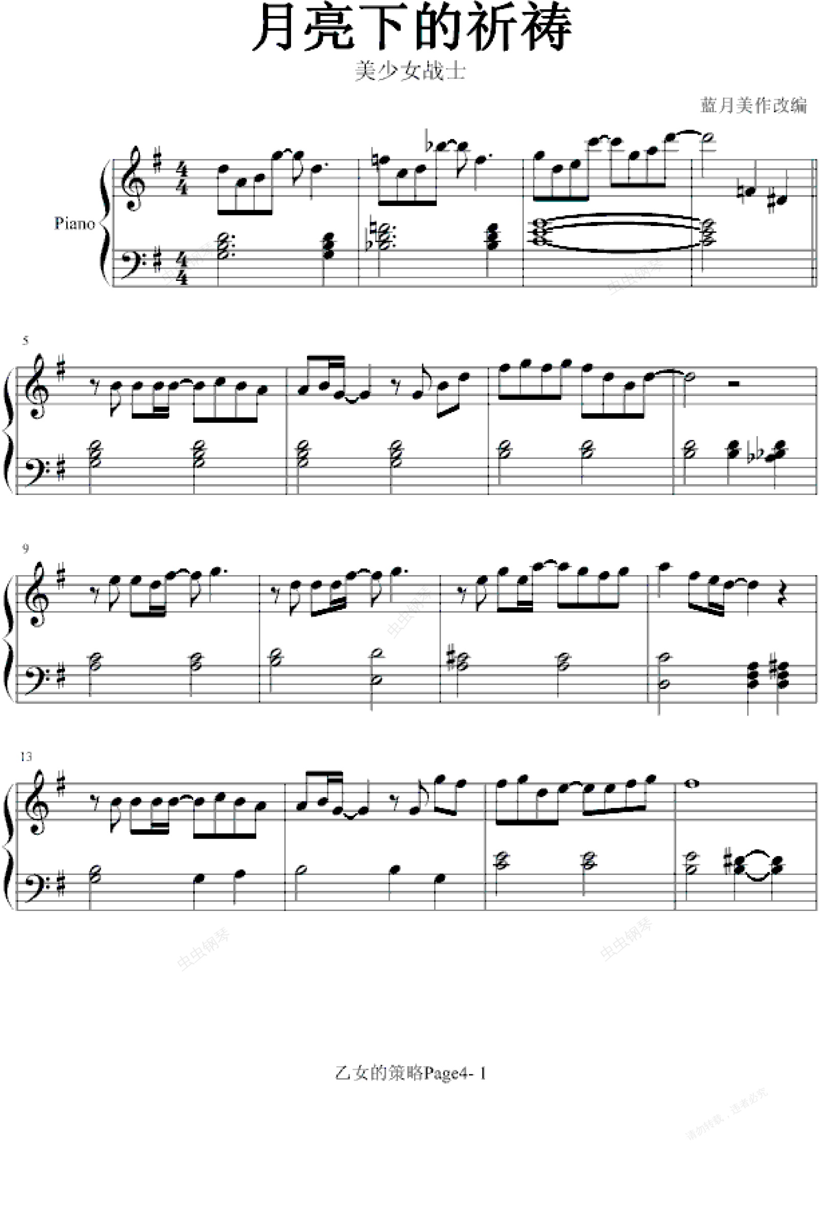 钢琴谱:月亮下的祈祷&晚礼服的幻影