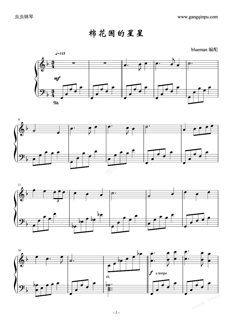 钢琴谱:棉花国的星星