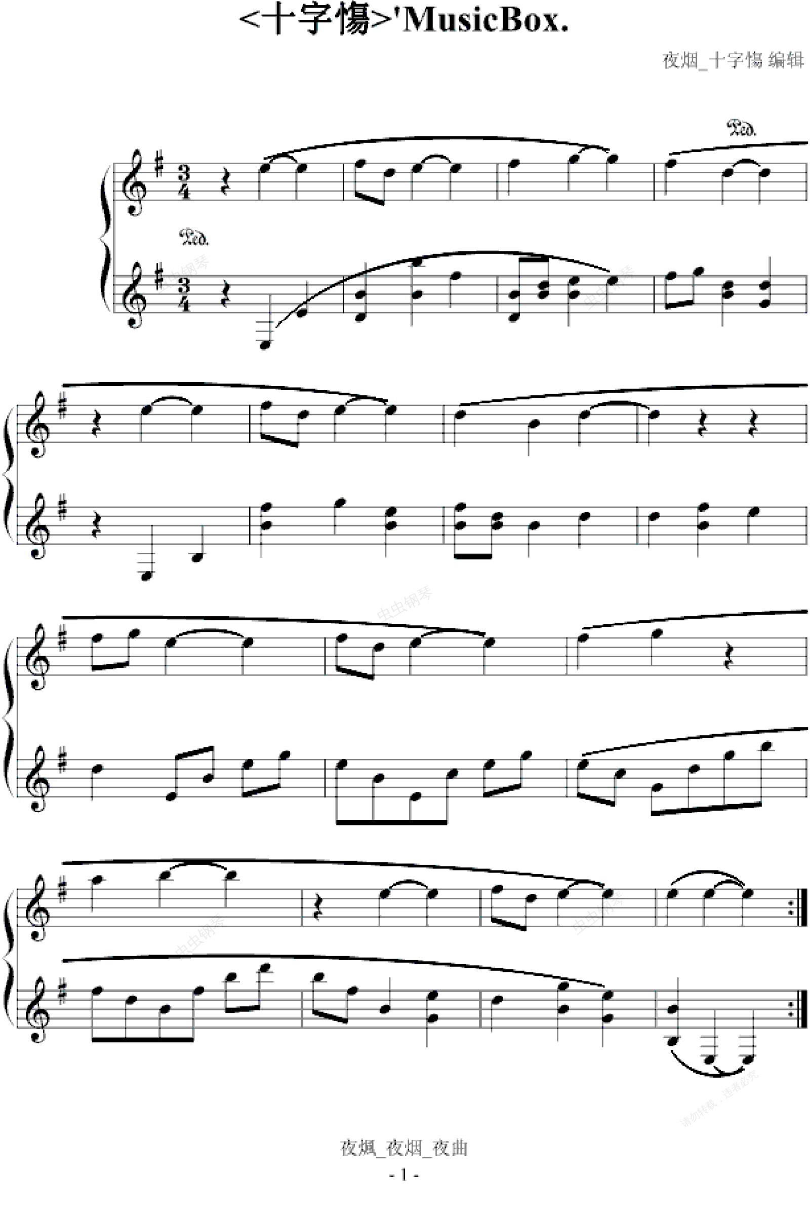 钢琴谱:十字伤-纯属欣赏!十字伤MusicBox