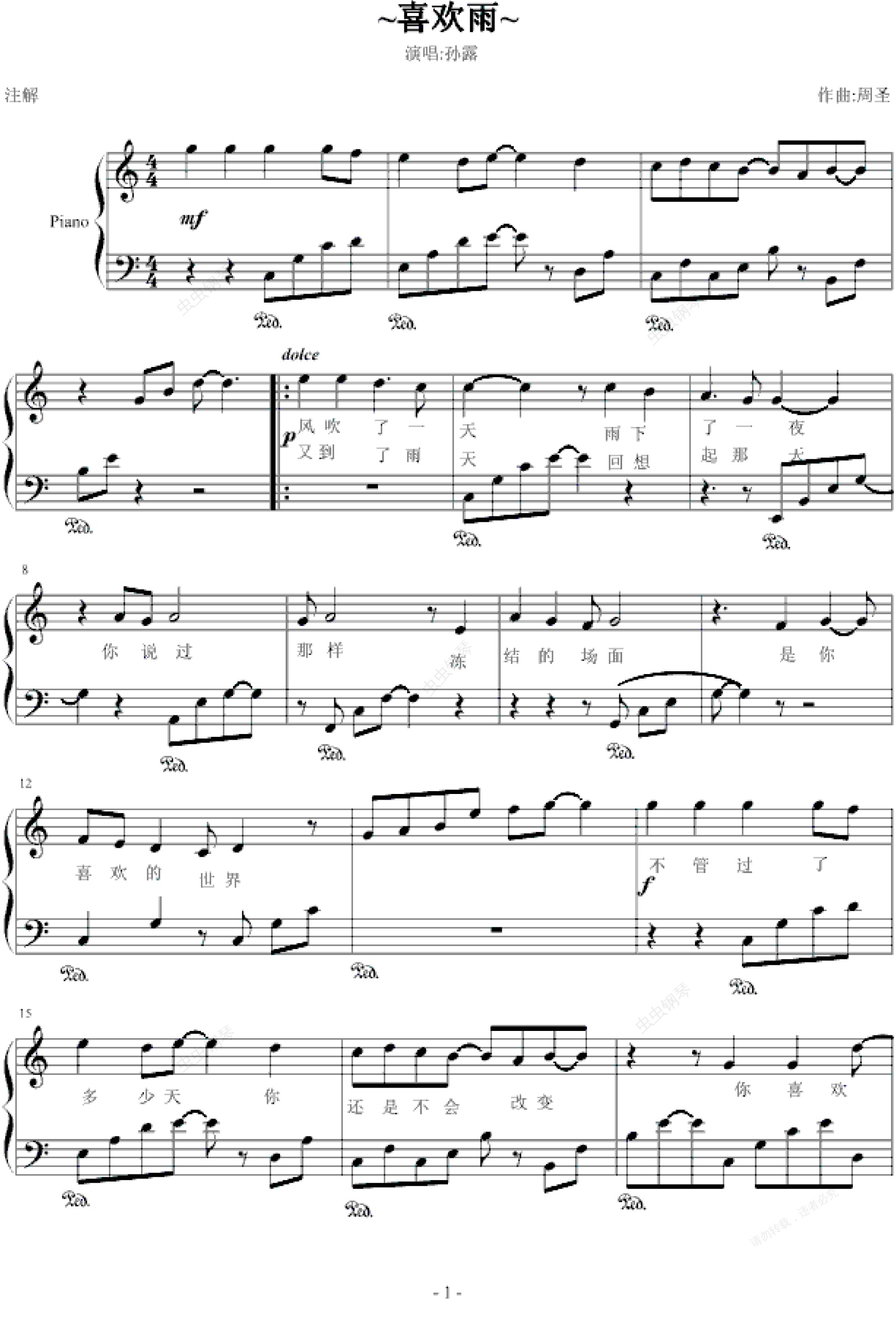 钢琴谱:~喜欢雨~