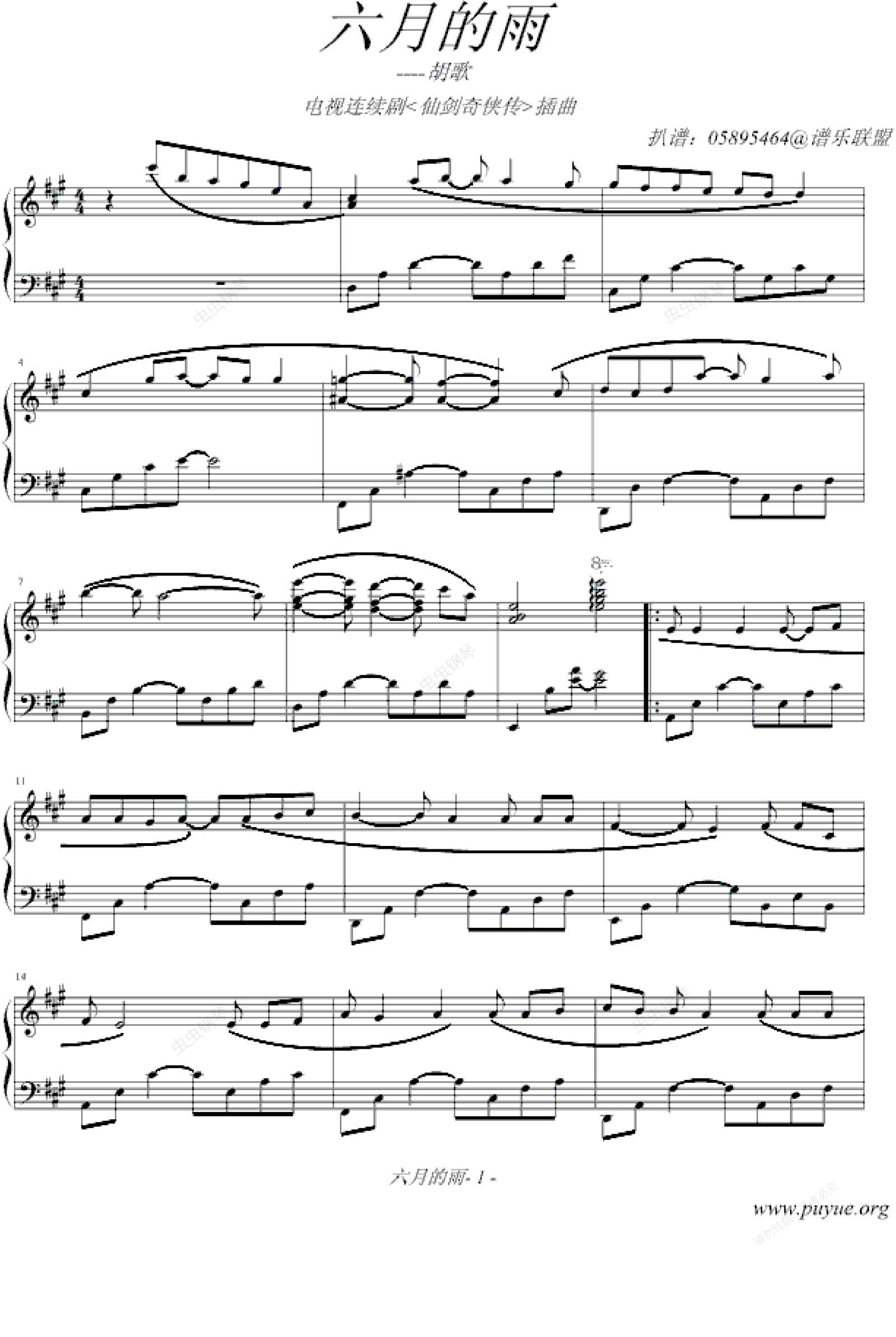 钢琴谱:六月的雨-05895464版
