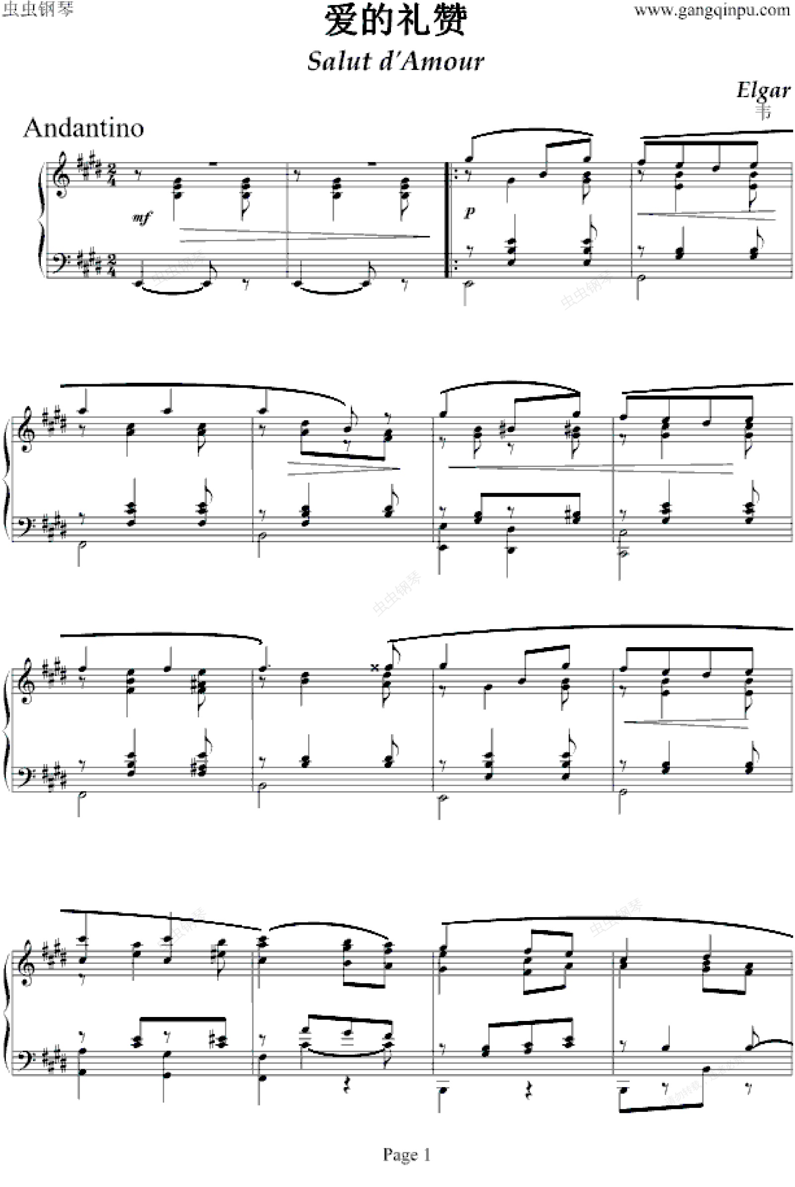 钢琴谱:爱的礼赞