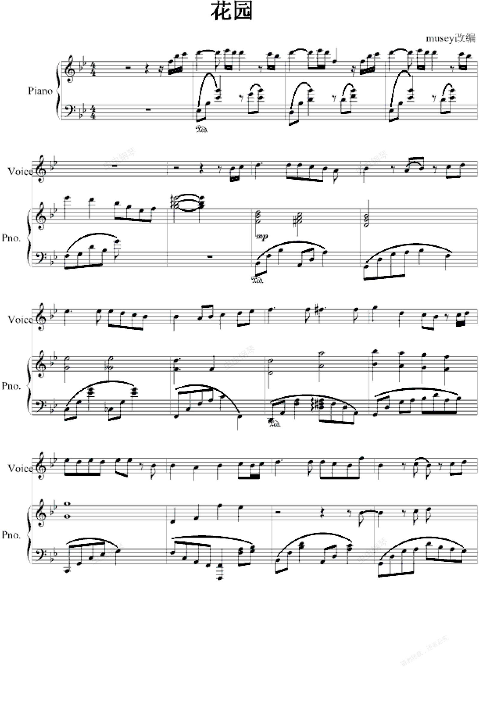 钢琴谱:花园-弹唱版