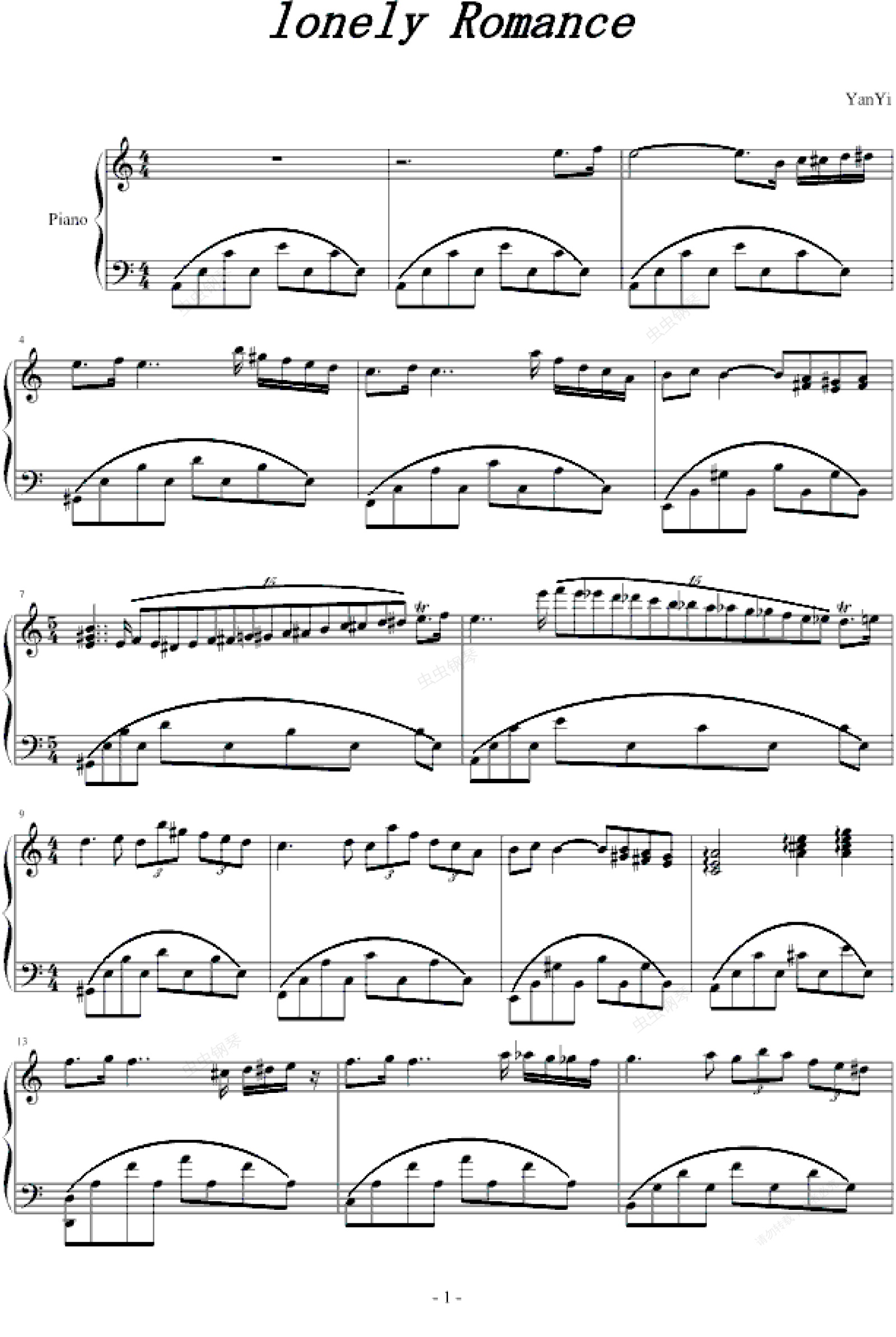 钢琴谱:Lonely Romance