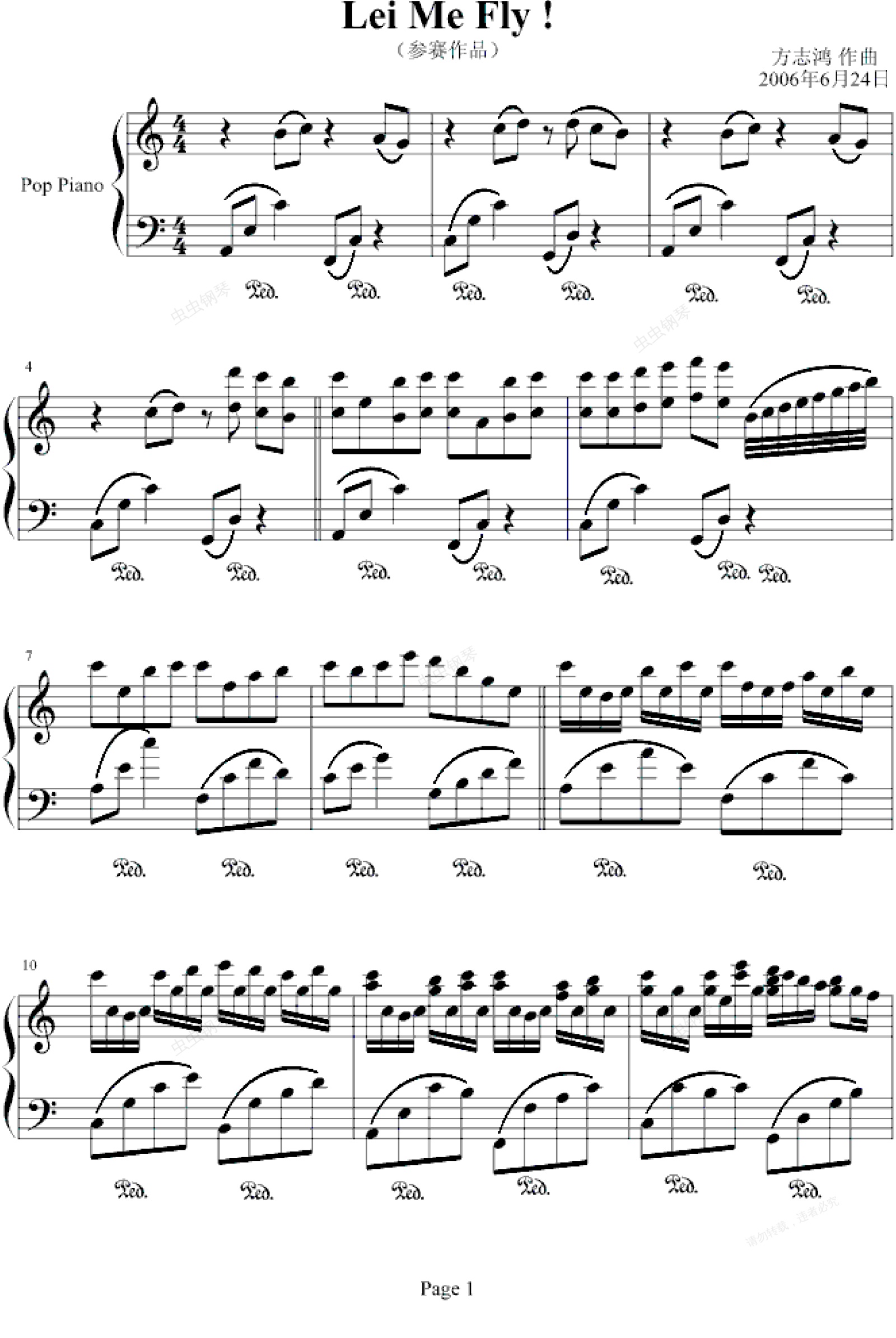 钢琴谱:Let me fly