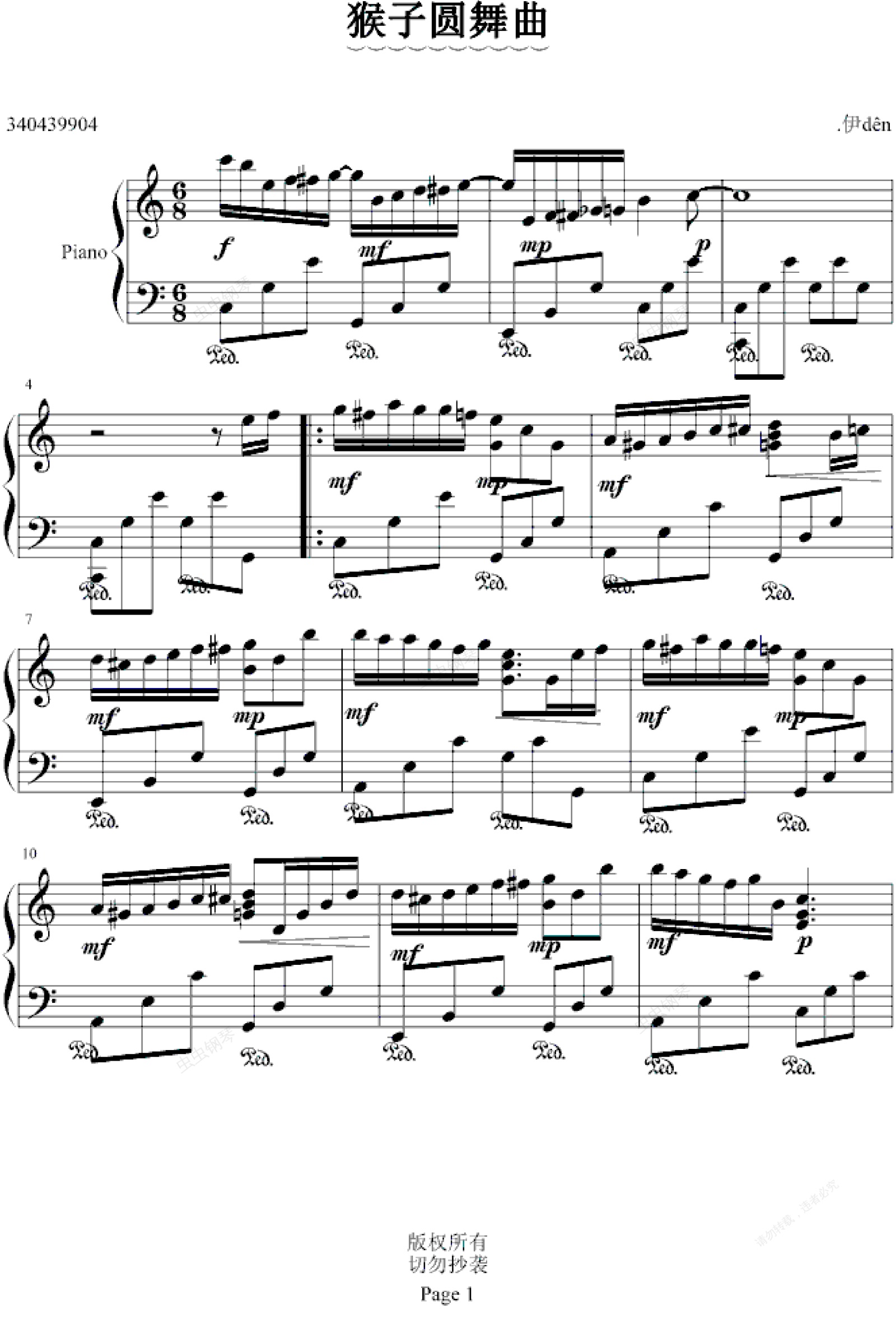 钢琴谱:猴子圆舞曲