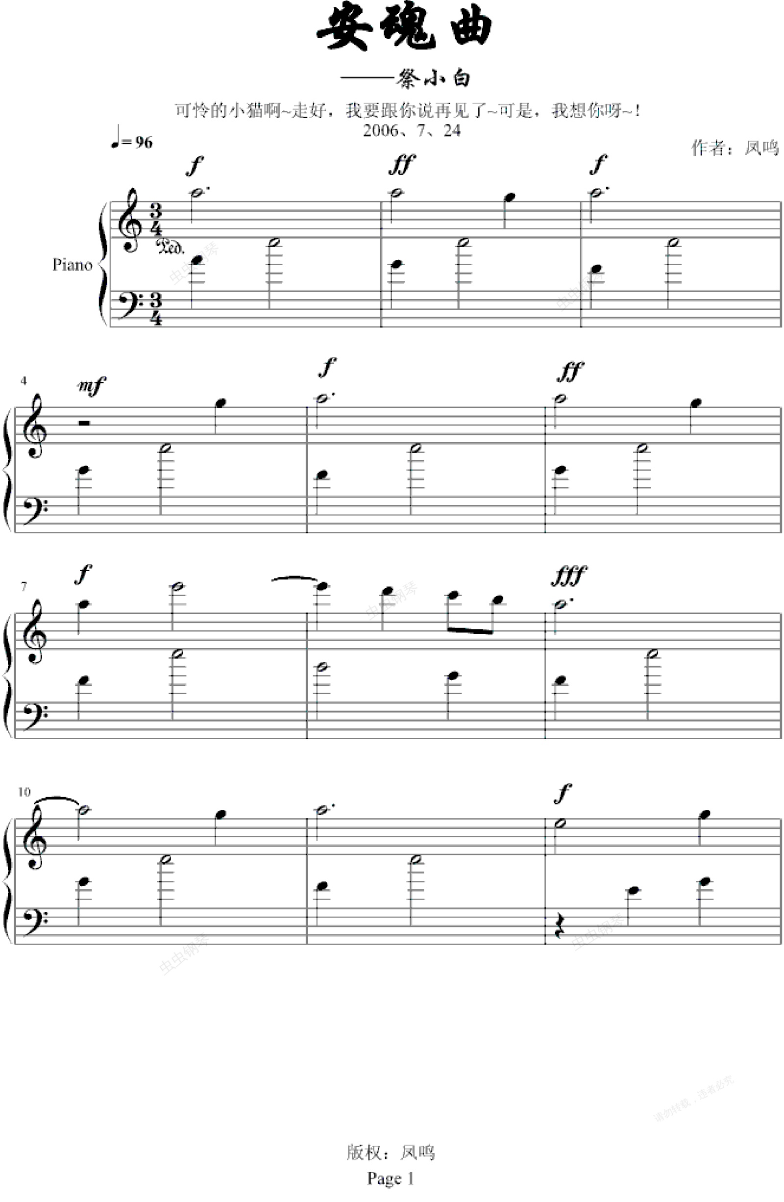 申明:此曲属于悼念我的小白猫,发泄曲,心情不好,不保证曲子的质量~
