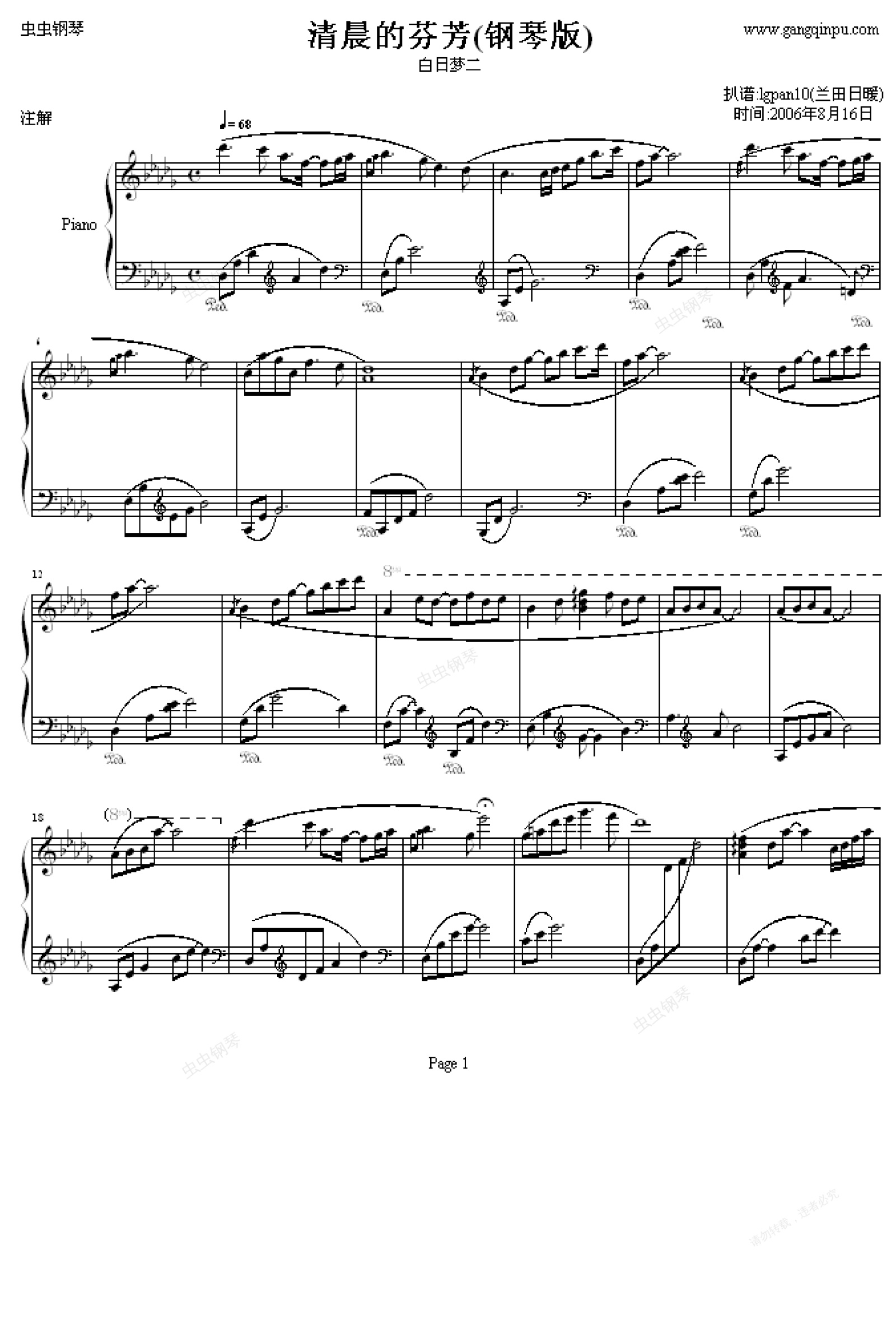 钢琴谱:清晨的芬芳-(钢琴版)