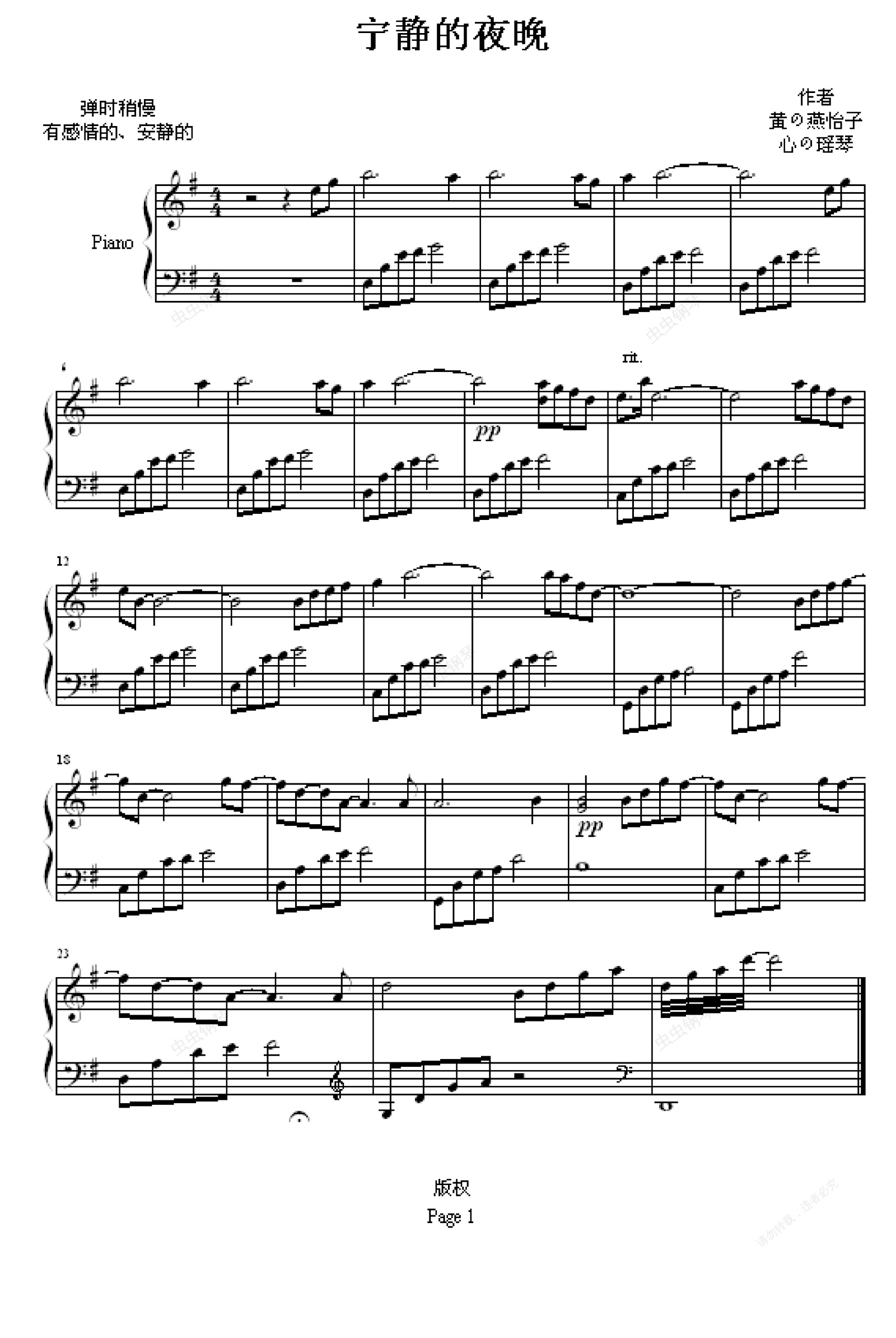 钢琴谱:宁静的夜晚
