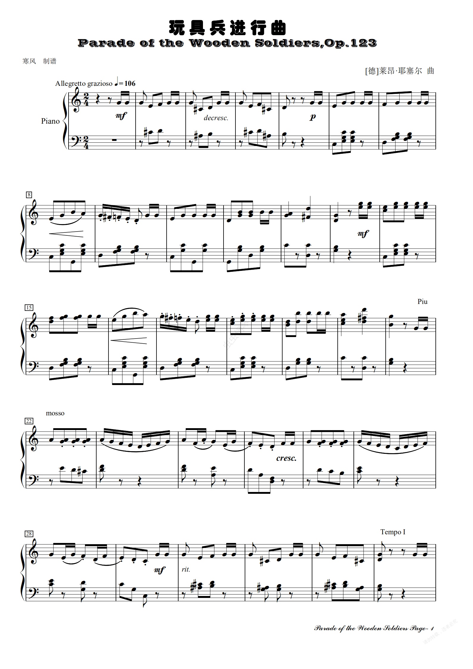 钢琴谱:玩具兵进行曲