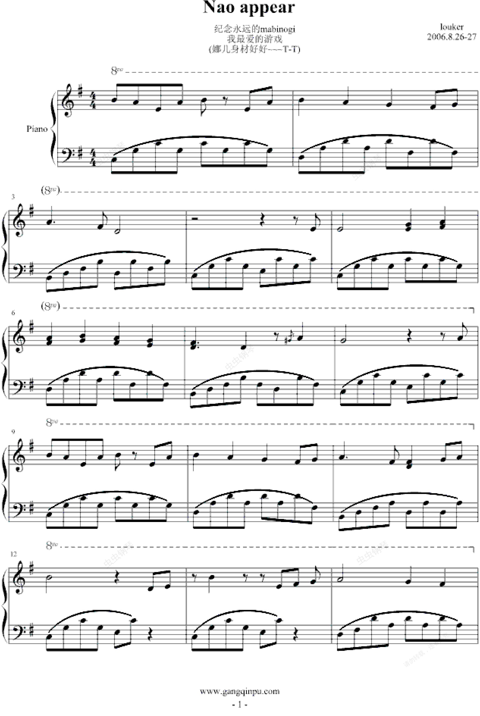 钢琴谱:Nao appear-洛奇npc娜儿登场音乐