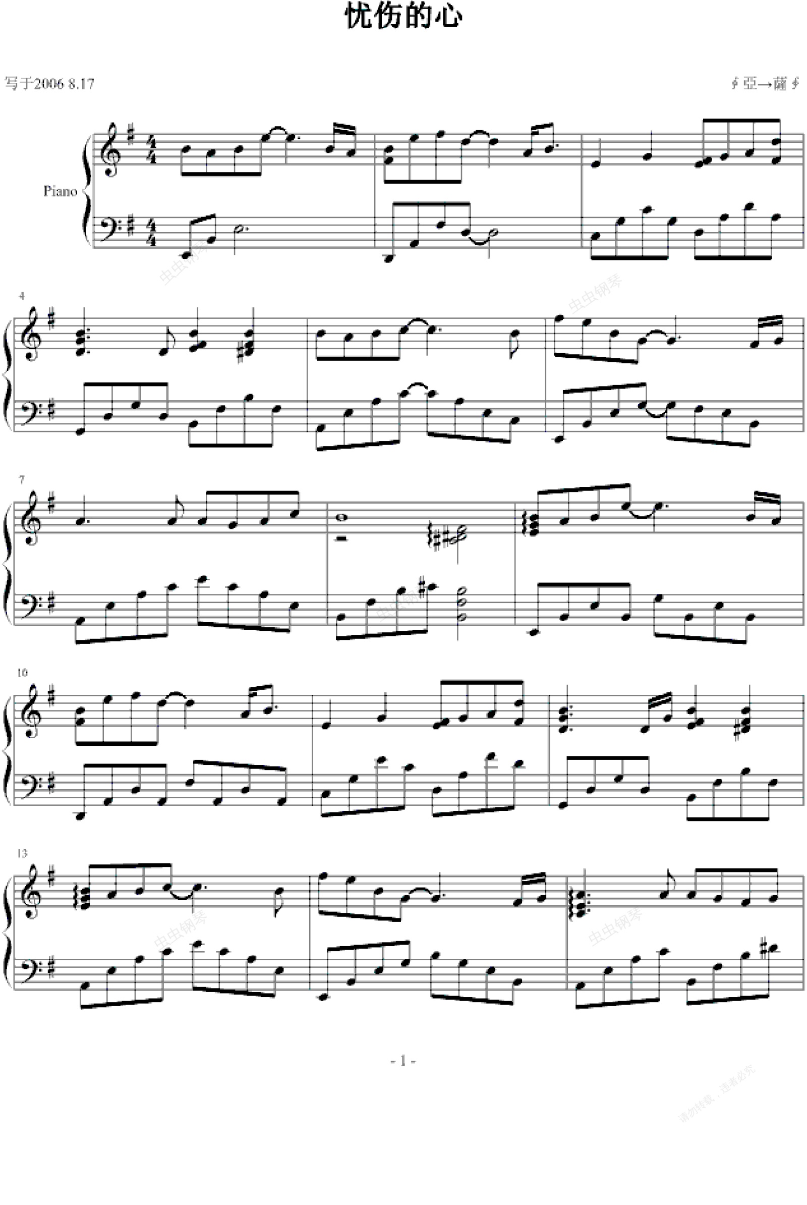 钢琴谱:忧伤的心