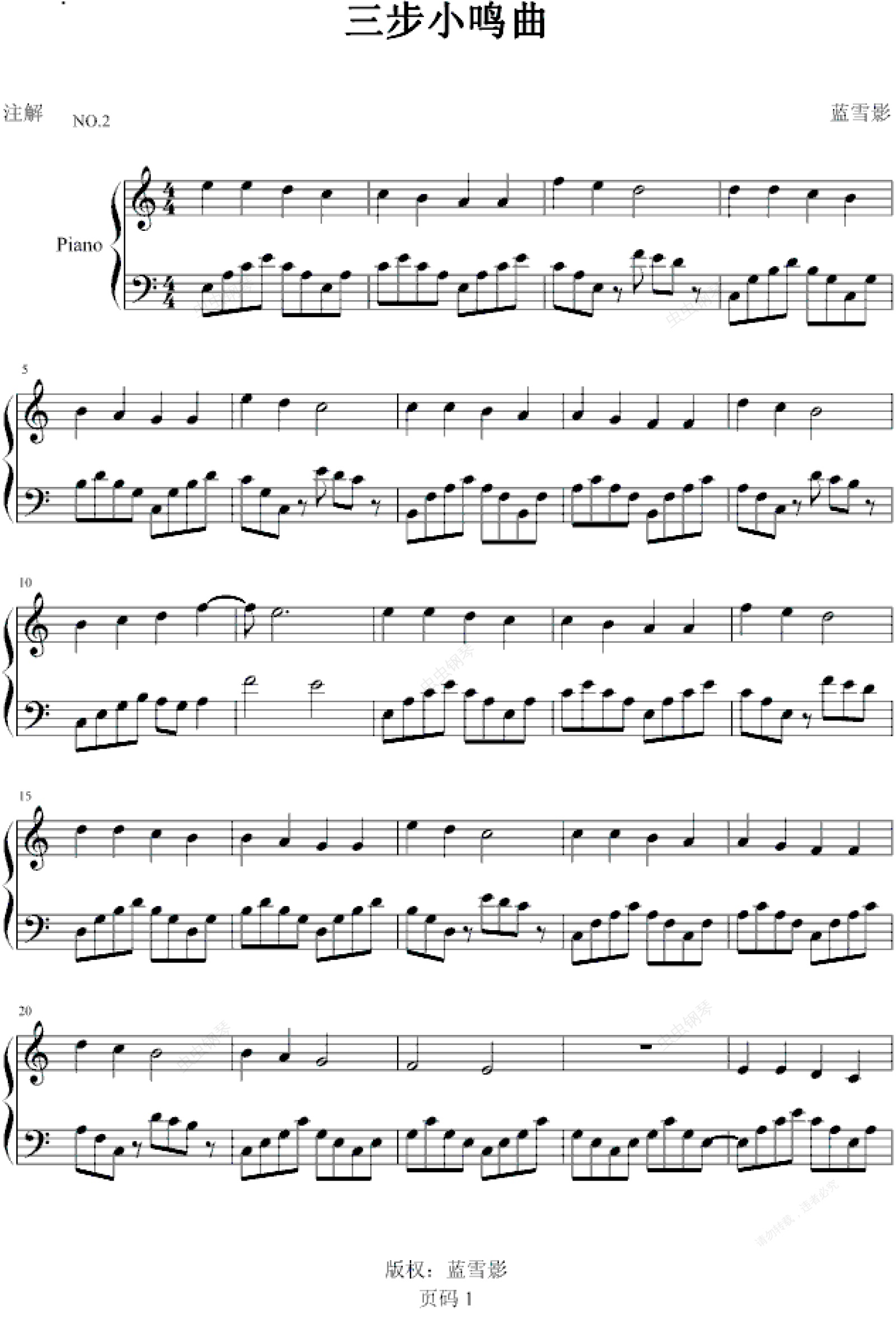 钢琴谱:三步小鸣曲