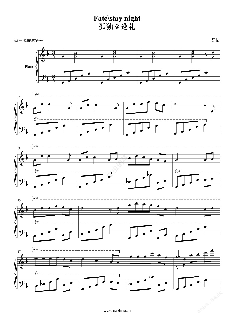 钢琴谱:Fate_stay night 孤独な巡礼