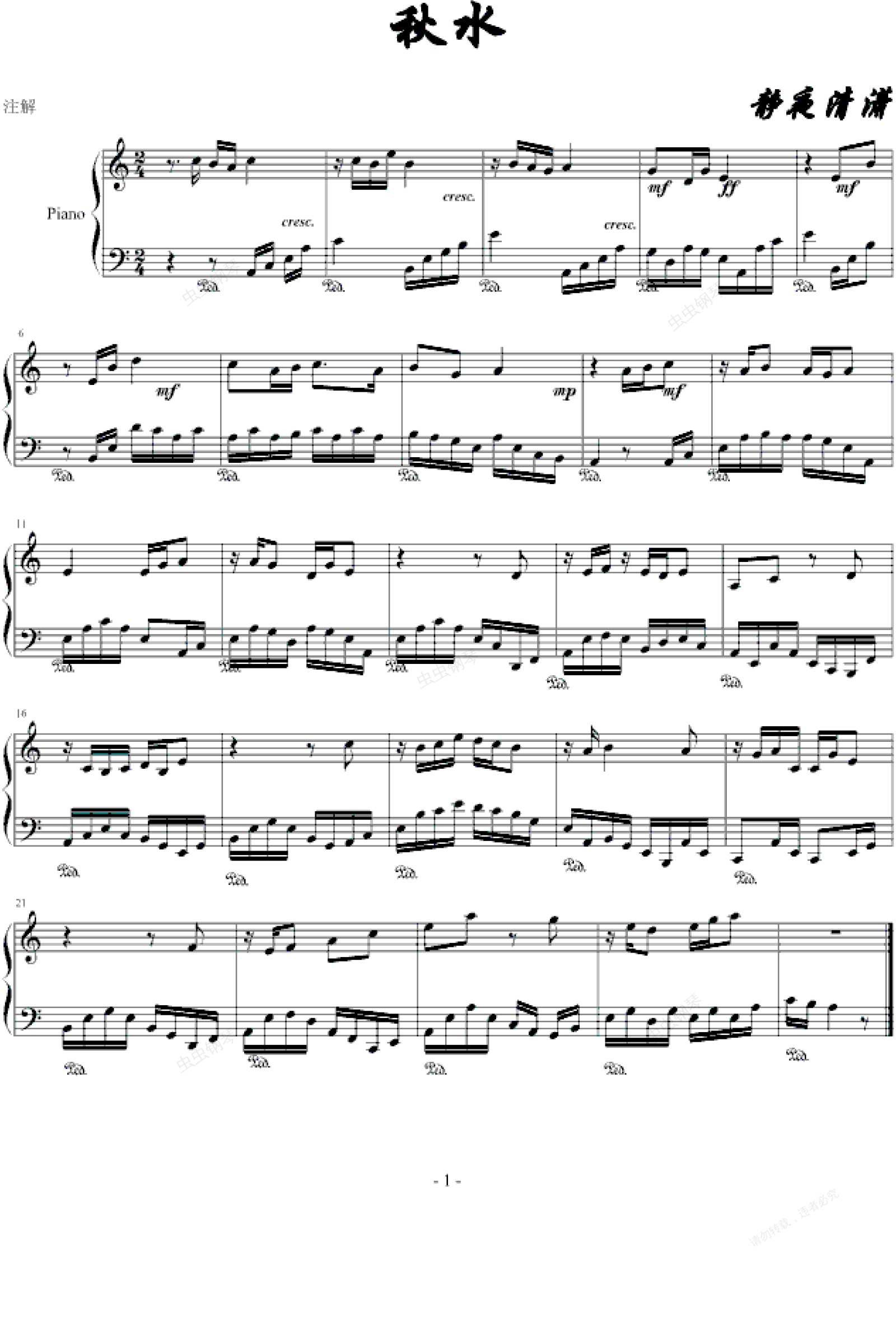 钢琴谱:秋水