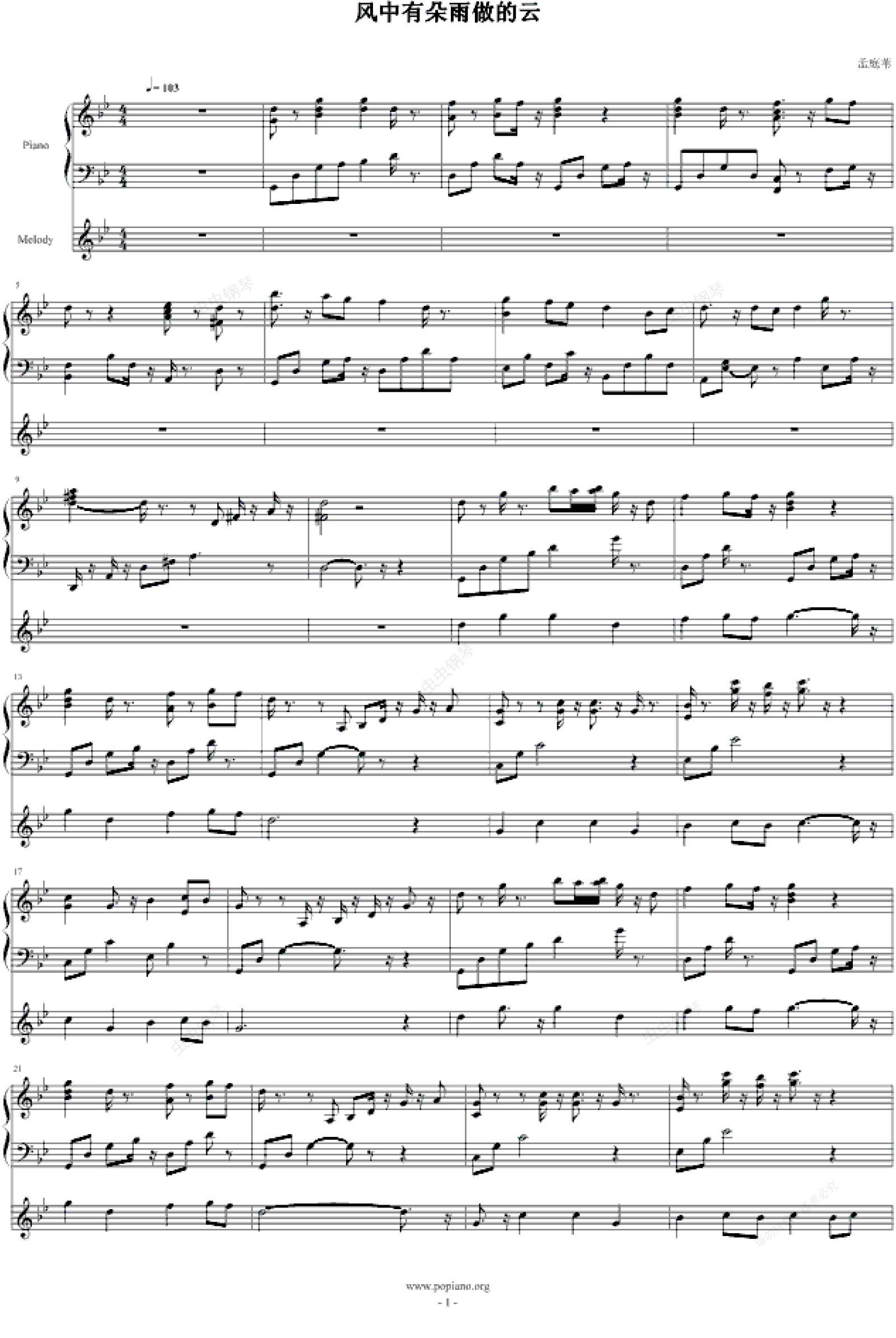 钢琴谱:风中有朵雨做的云-龙斯明