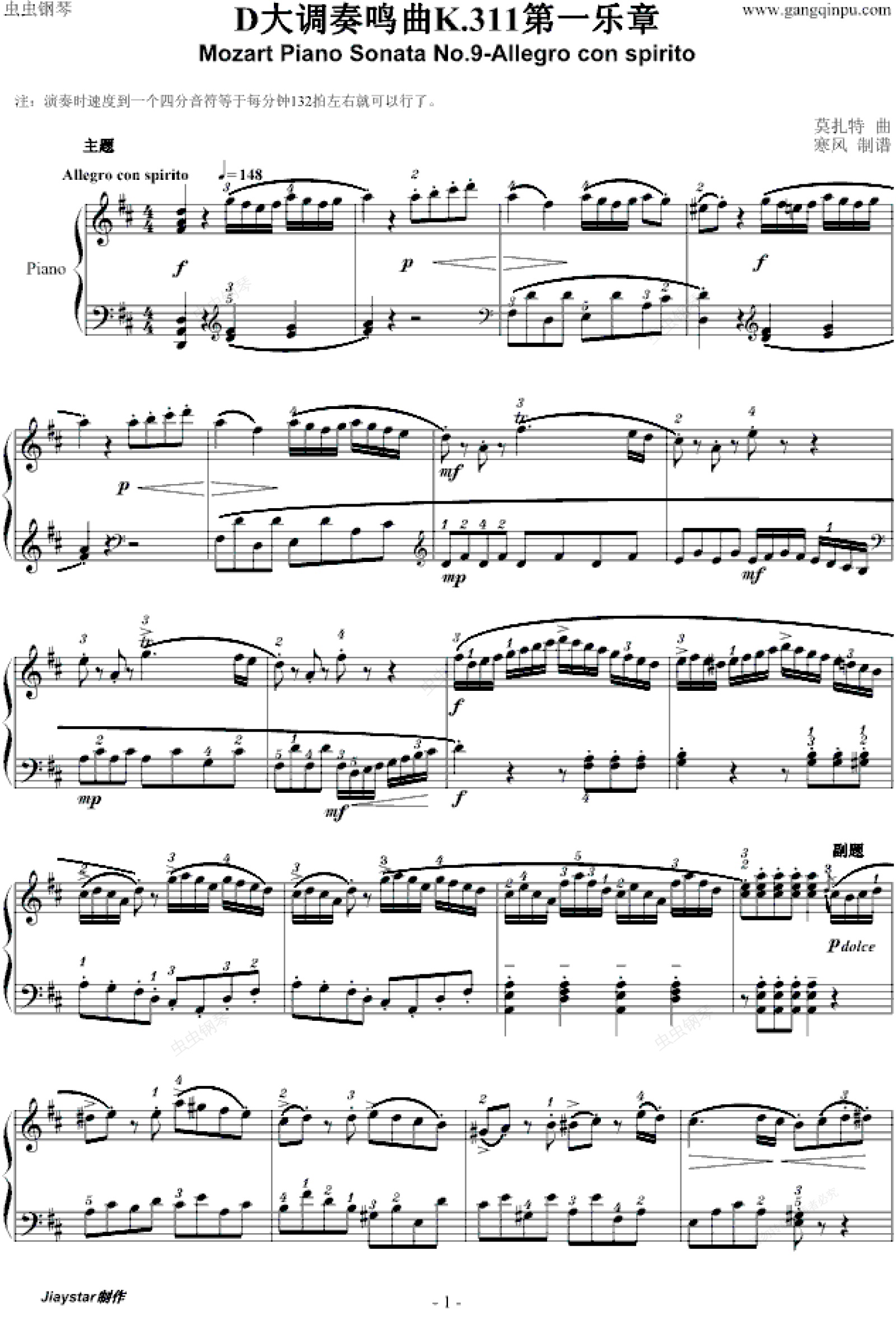 莫扎特D大调第九钢琴奏鸣曲K.311第一乐章