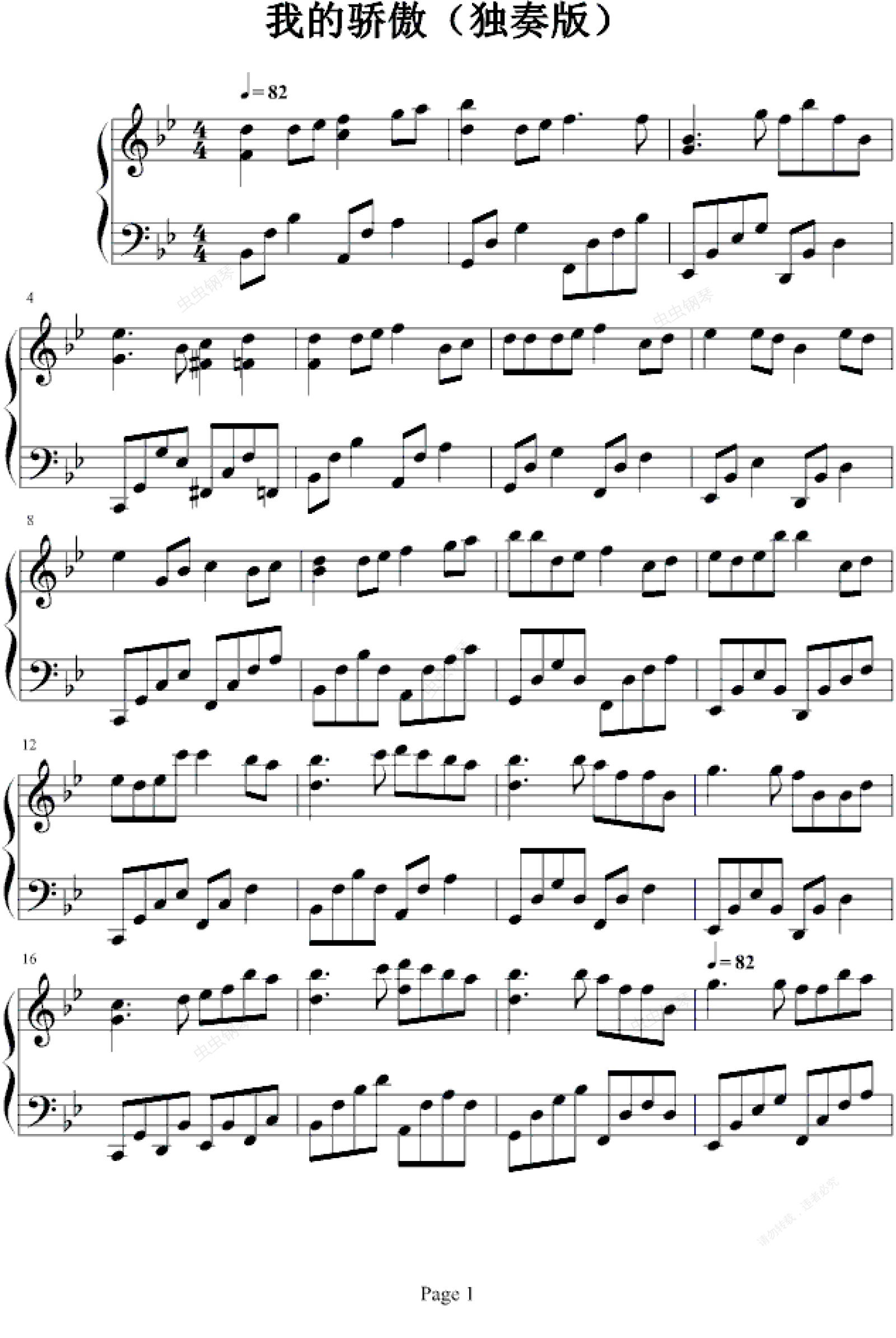钢琴谱:我的骄傲-(挥着翅膀的女孩)