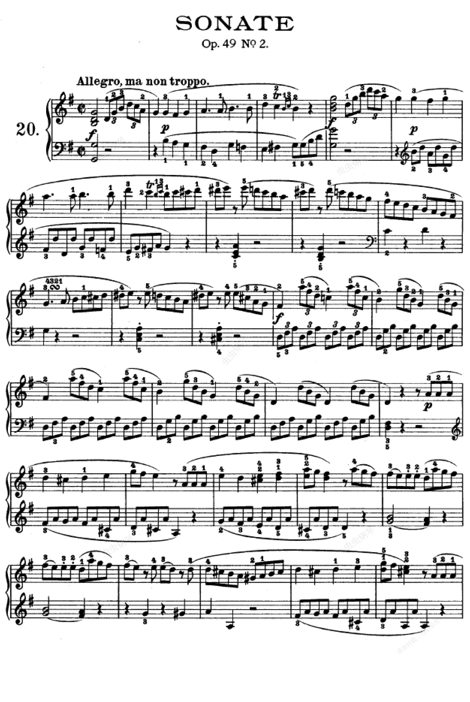 钢琴谱:第二十钢琴奏鸣曲-Op.49 No.2