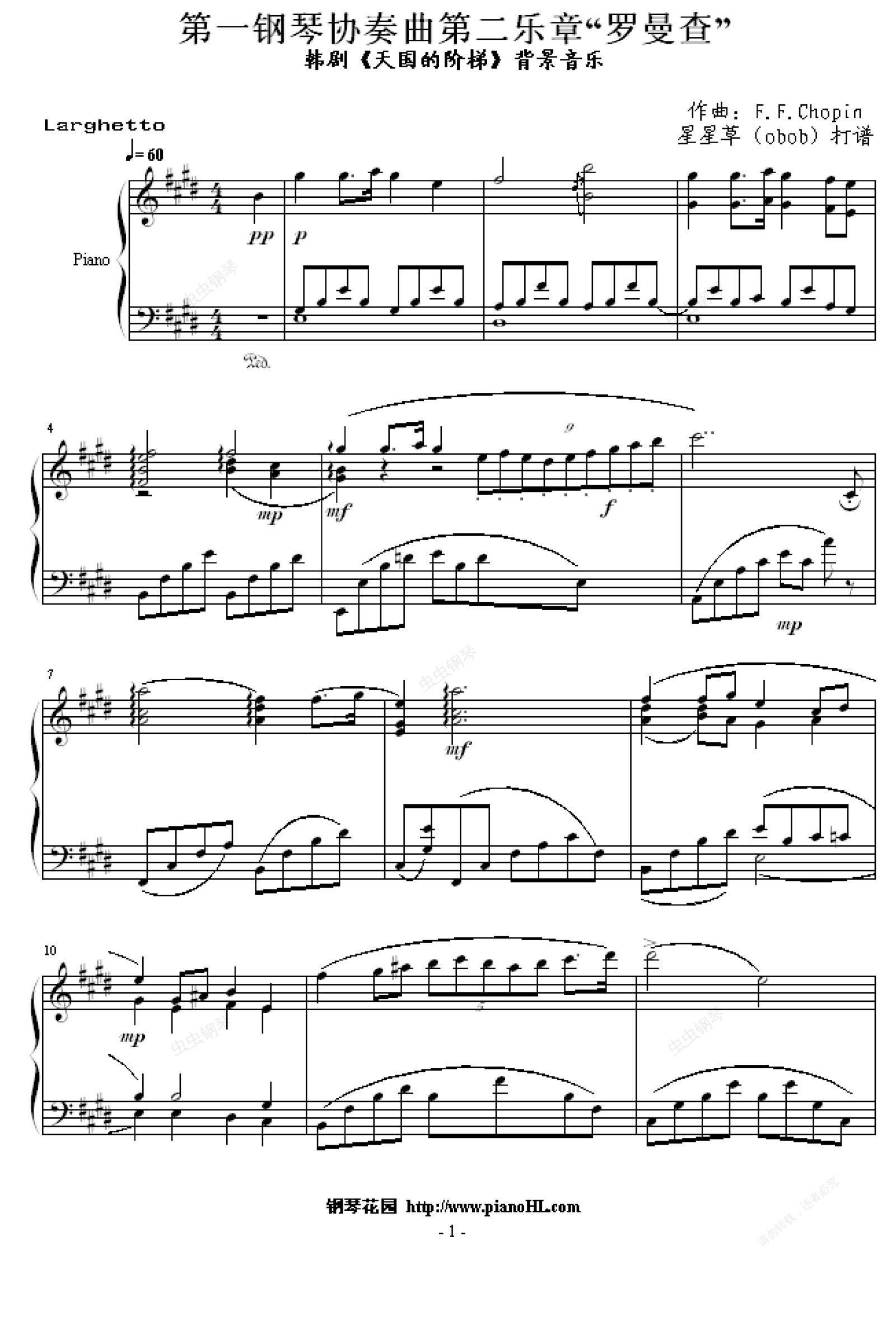 钢琴谱:第一钢琴协奏曲第二乐章“罗曼查”