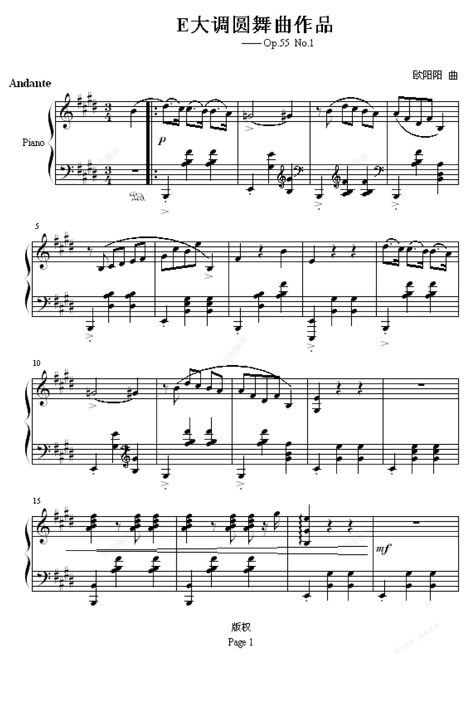 钢琴谱:E大调圆舞曲作品Op.55 No.1